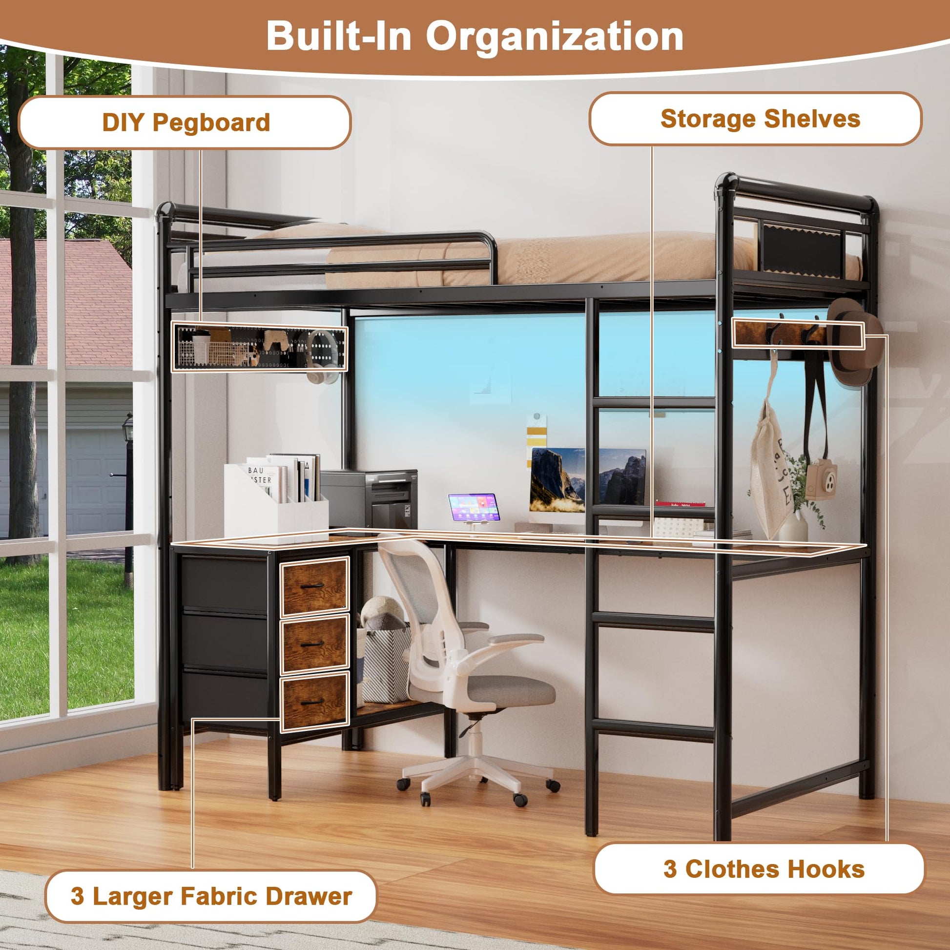 - Built-in desk workspace ideal for studying, gaming, or working from home