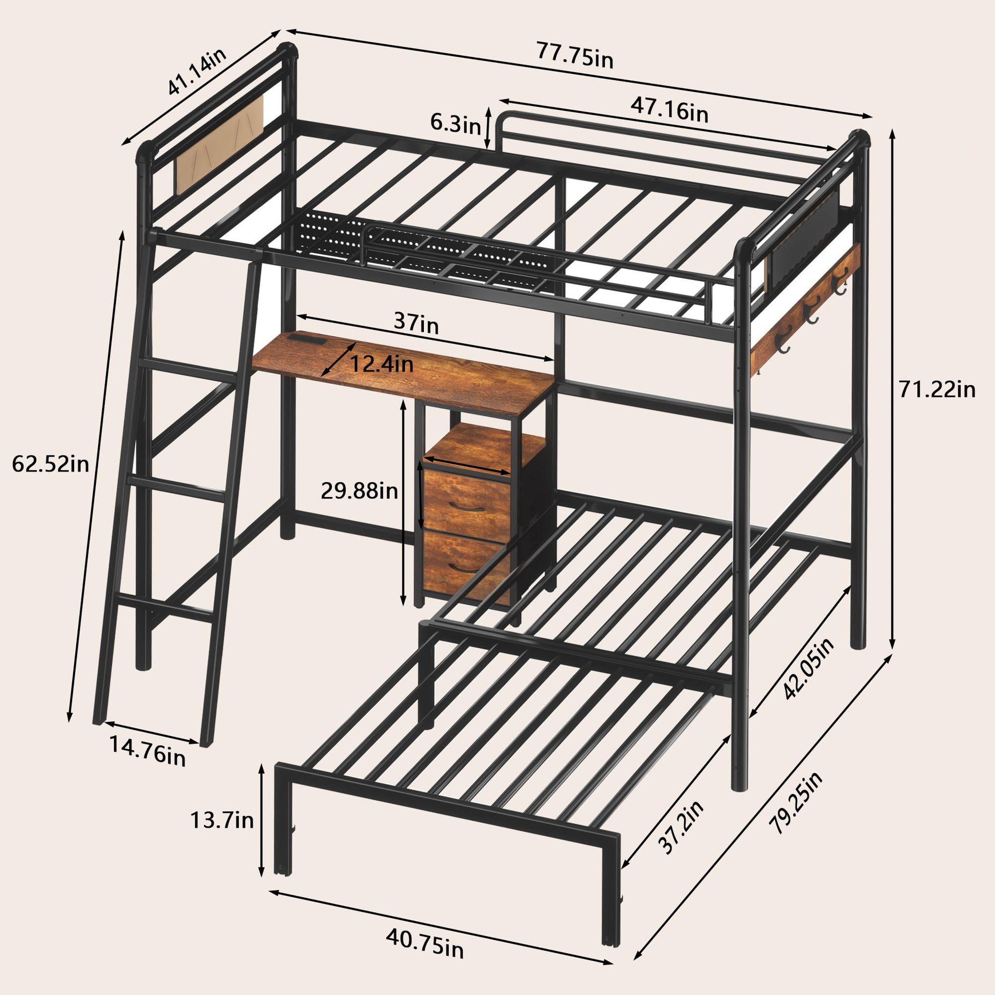 Built with heavy-duty industrial metal, this bunk bed ensures long-lasting stability and safety. The top bunk includes protective guardrails, and the secure ladder provides safe access for children and adults alike.