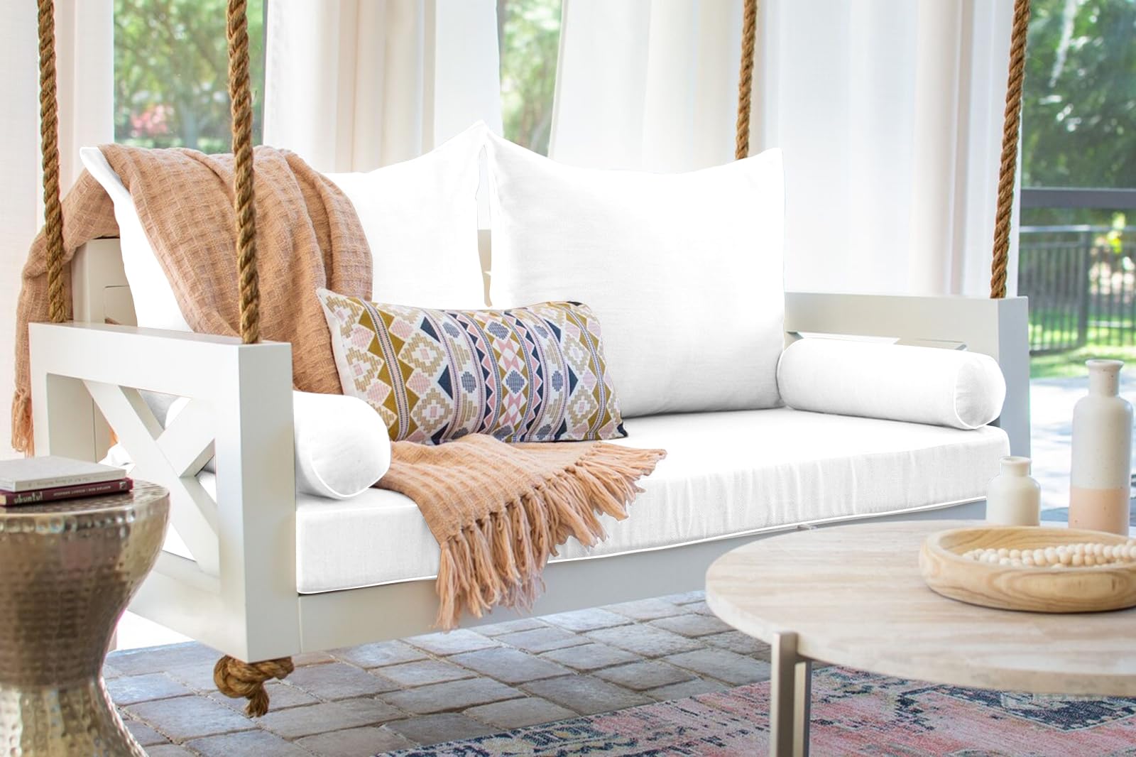 Premium waterproof fitted sheet slipcover designed specifically for twin-size outdoor patio daybeds and porch swing beds. Features a convenient zipper closure for easy installation and removal.
