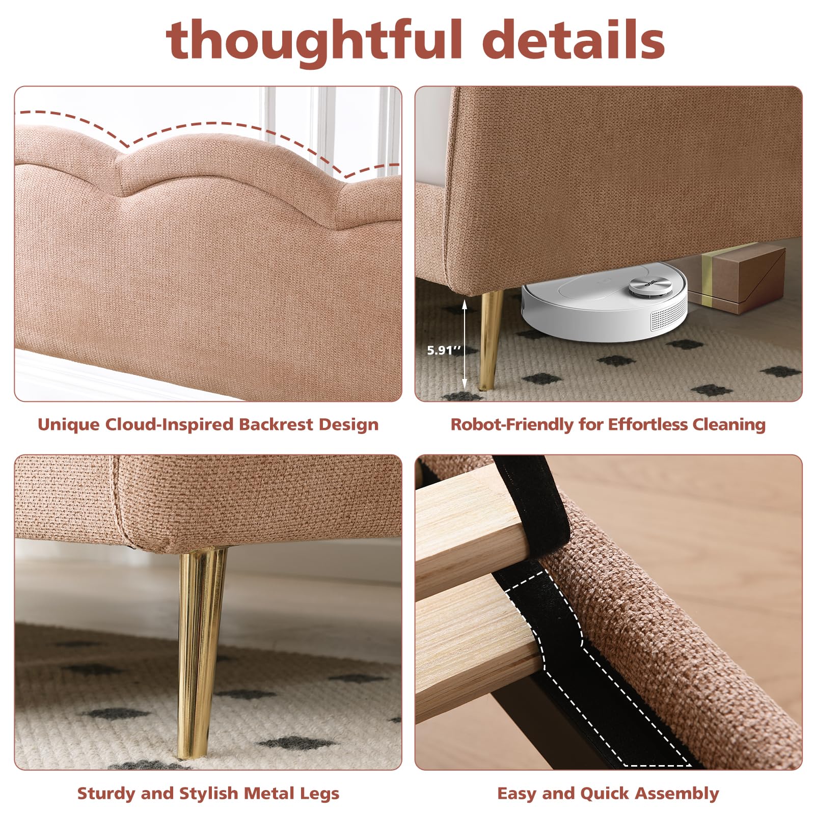 - Storage Space: 5.91" under-bed clearance for convenient storage