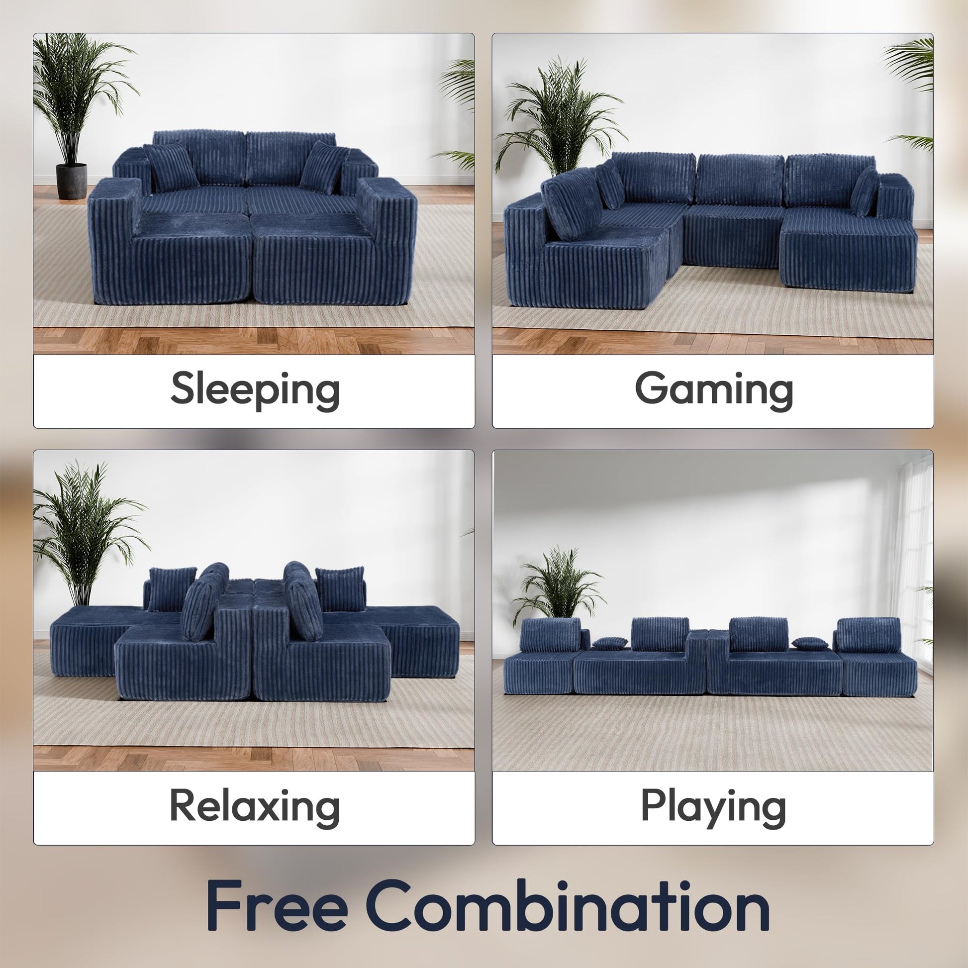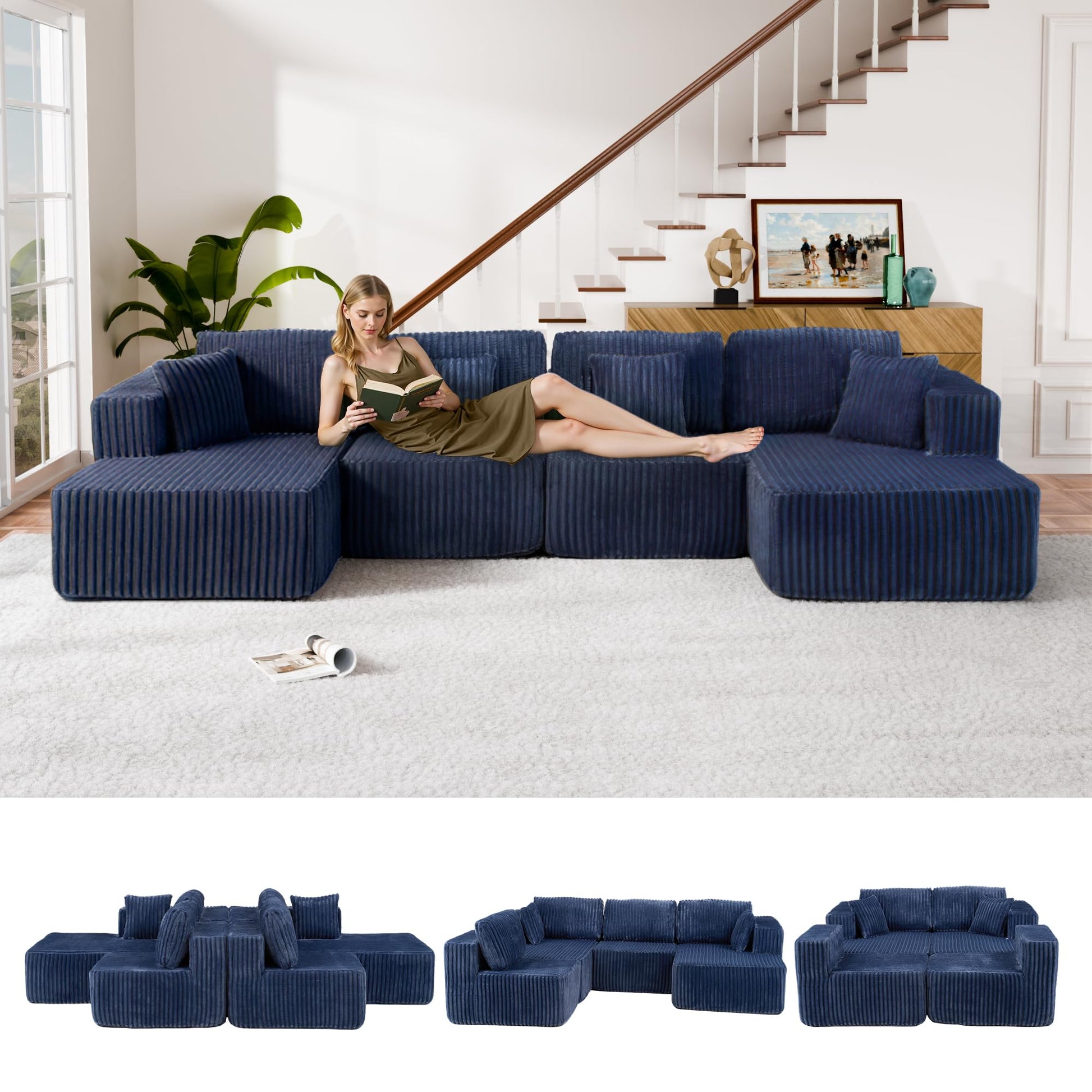 This spacious U-shaped modular sectional sofa features premium corduroy upholstery and high-density elastic padding for cloud-like comfort. The ergonomic design with tufted back and armrests provides excellent support for extended relaxation.