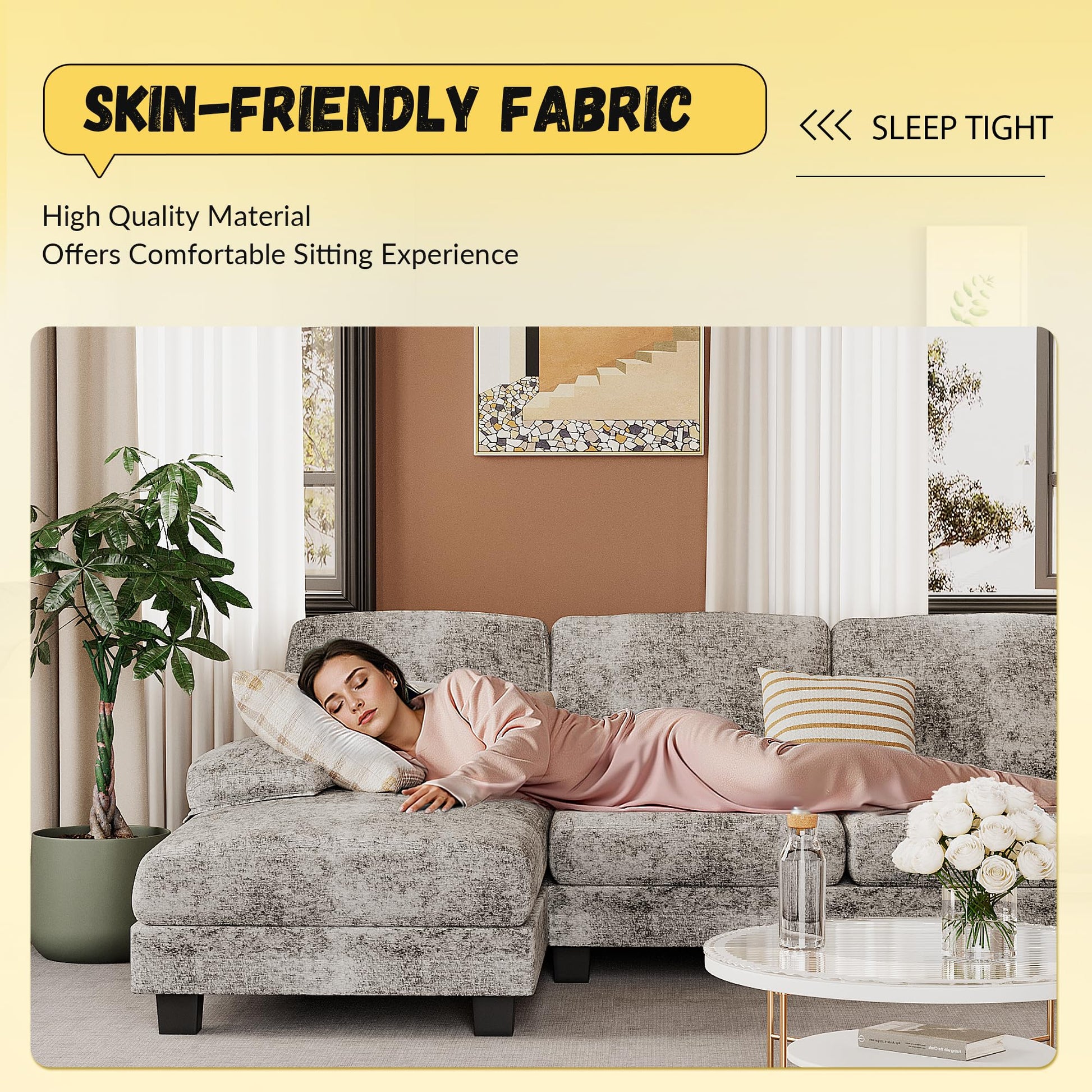 Transform your living space with this modern U-shaped sectional sofa designed for comfort and style. Upholstered in soft chenille fabric, this 4-seat couch offers ample seating for family gatherings and entertaining guests.