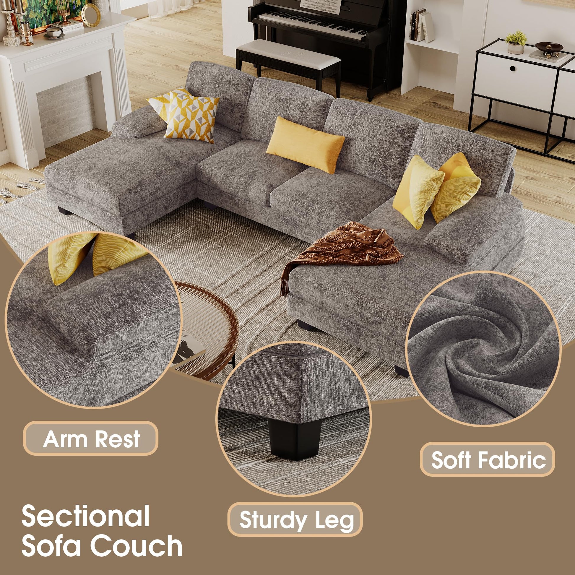 - Double Chaise Design: Spacious U-shaped configuration with double chaise lounges provides ample seating and relaxation space.