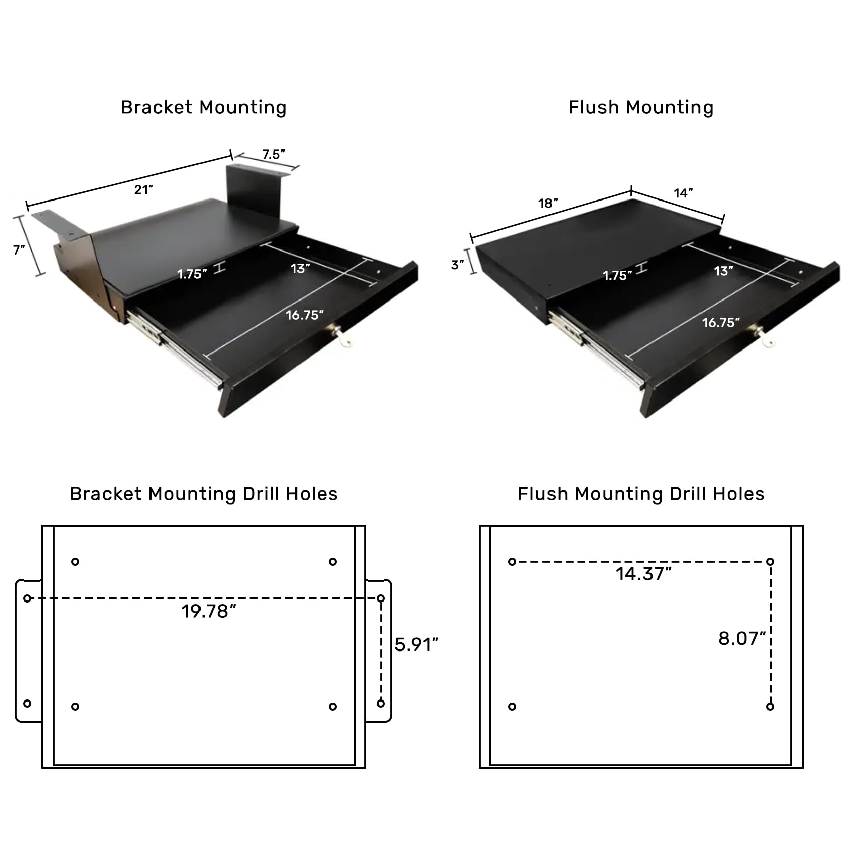 - Includes padded shelf above drawer when using extender brackets