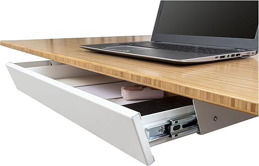 Add functional storage space to your standing desk with this lockable under-desk drawer. Perfect for organizing pens, notepads, keys, and other small items while keeping your desktop clutter-free.