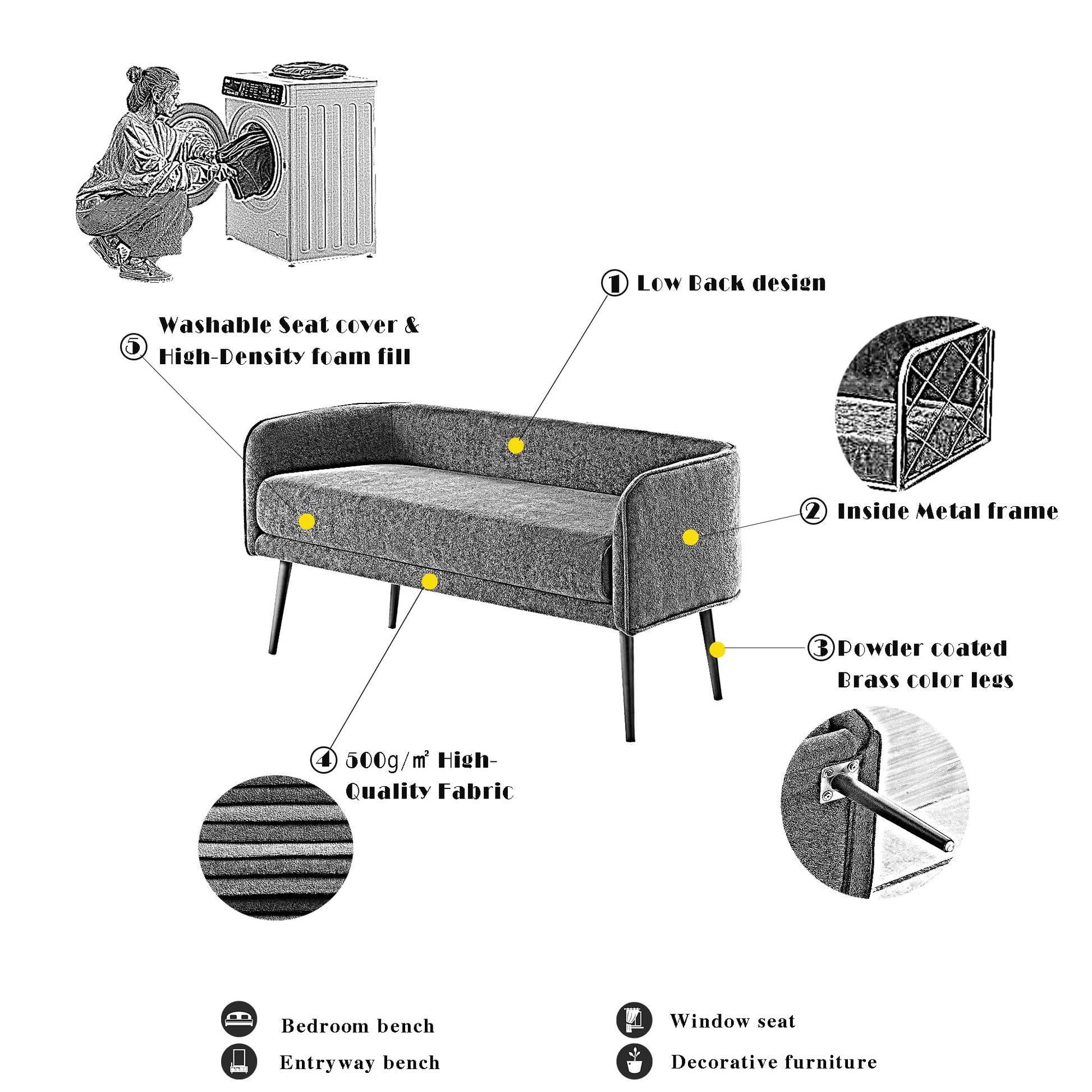 This contemporary upholstered bench combines sleek design with exceptional comfort, making it a versatile addition to any room. Featuring a supportive backrest and gently curved armrests, this bench provides optimal relaxation whether you're reading, putting on shoes, or simply taking a moment to unwind.