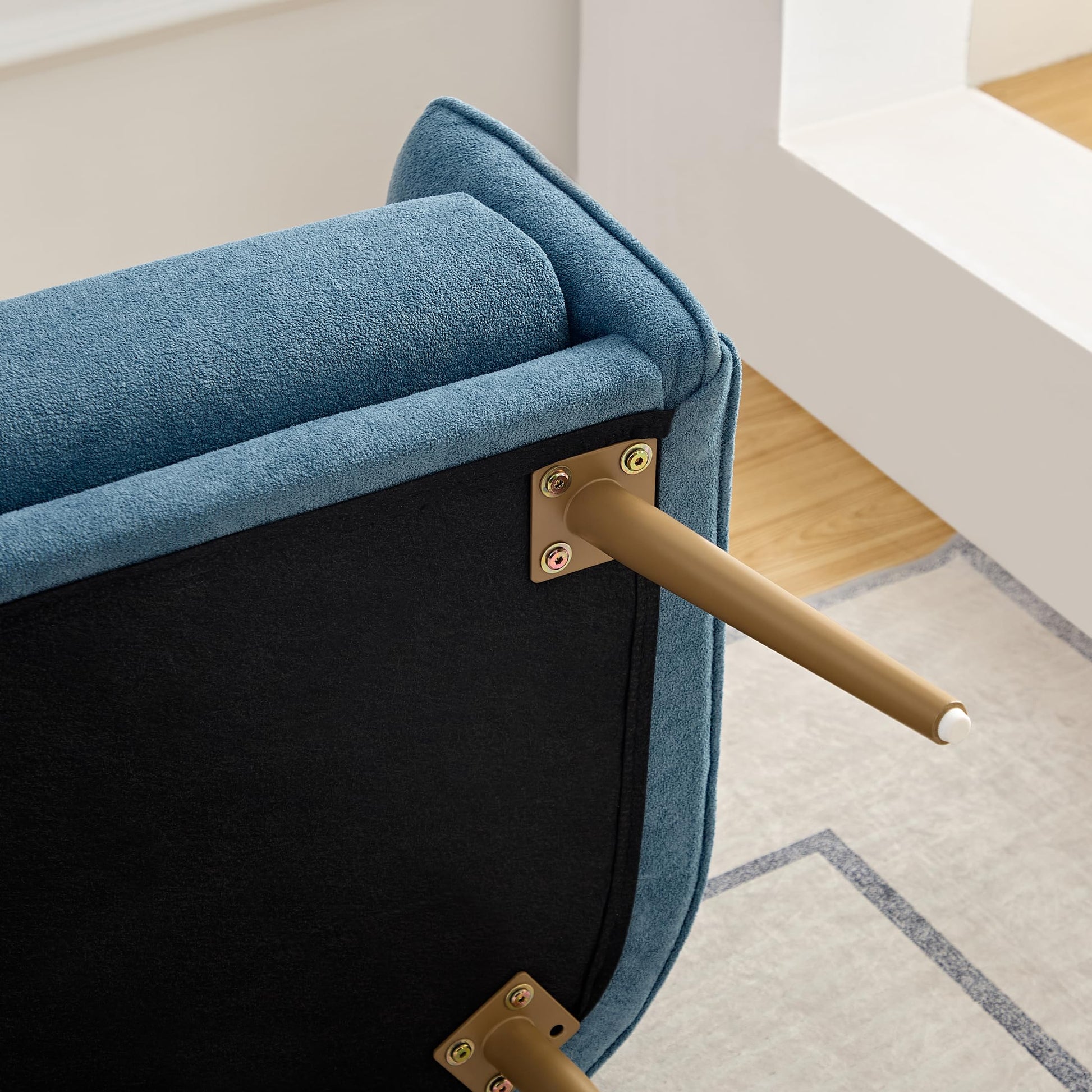 The premium fabric upholstery offers a luxurious feel while remaining easy to maintain, ensuring long-lasting elegance. Inside, a sturdy metal frame provides exceptional stability and support for daily use. The neutral blue upholstery and contemporary silhouette allow this piece to complement any decor style, from modern to traditional.