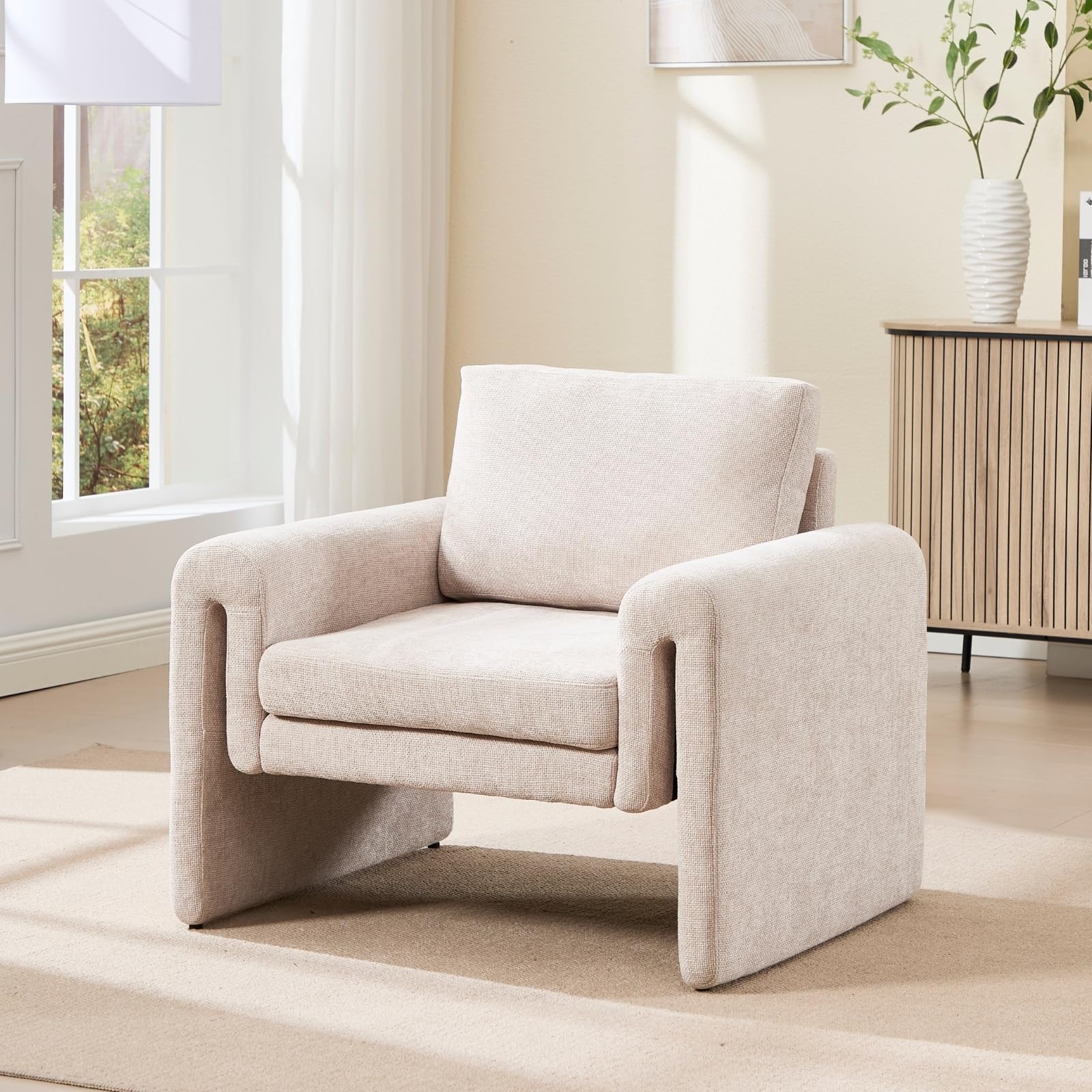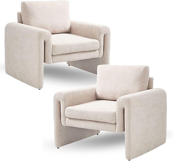 Experience ultimate comfort and contemporary style with these modern upholstered accent chairs. Featuring a unique curved silhouette and breathable chenille fabric in a beautiful oatmeal color, these chairs are perfect for living rooms, bedrooms, offices, or reception areas.