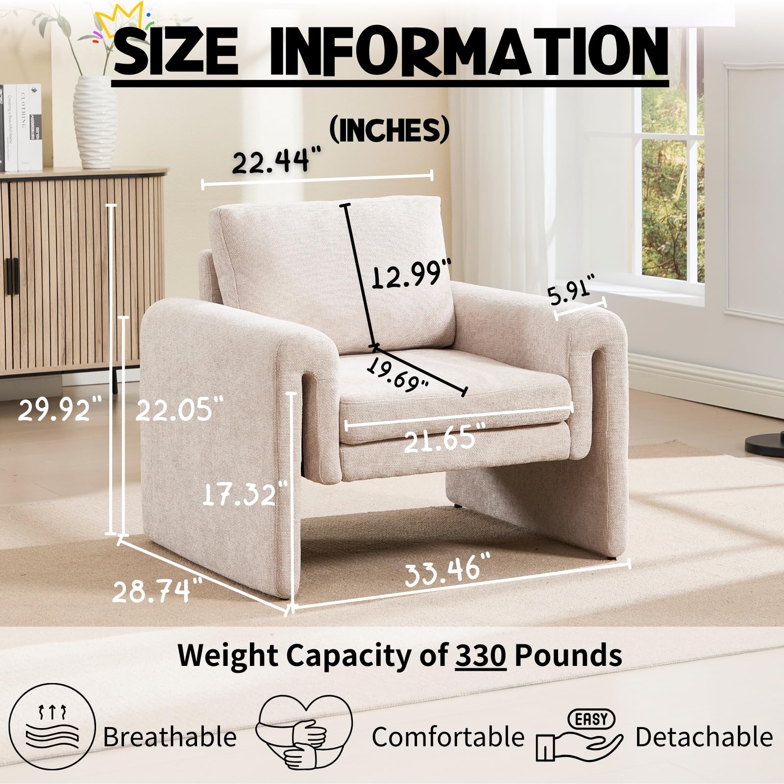 - Premium Materials: Crafted from breathable chenille fabric with high-resilience foam filling for long-lasting comfort. Durable wood and metal frame ensures superior strength and stability