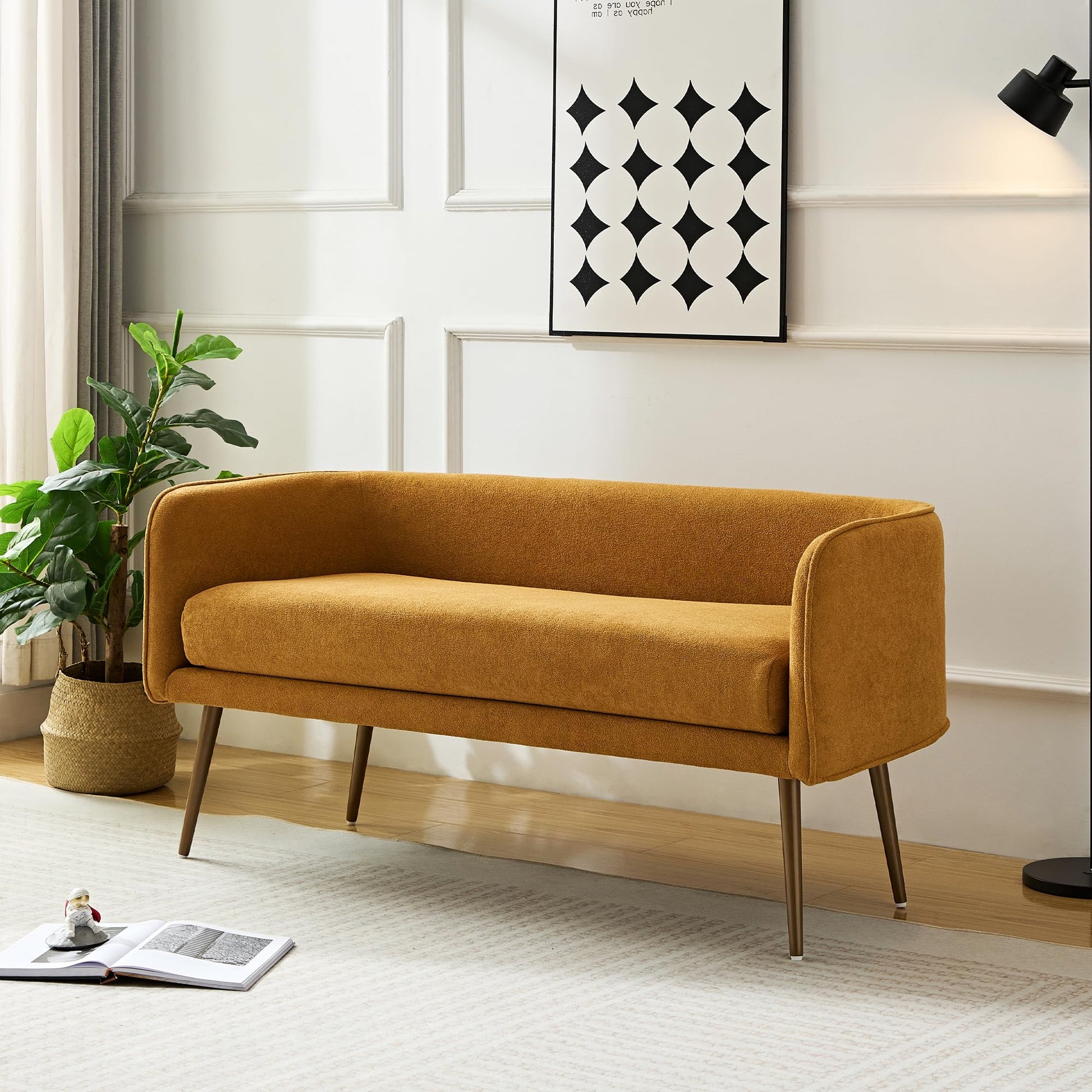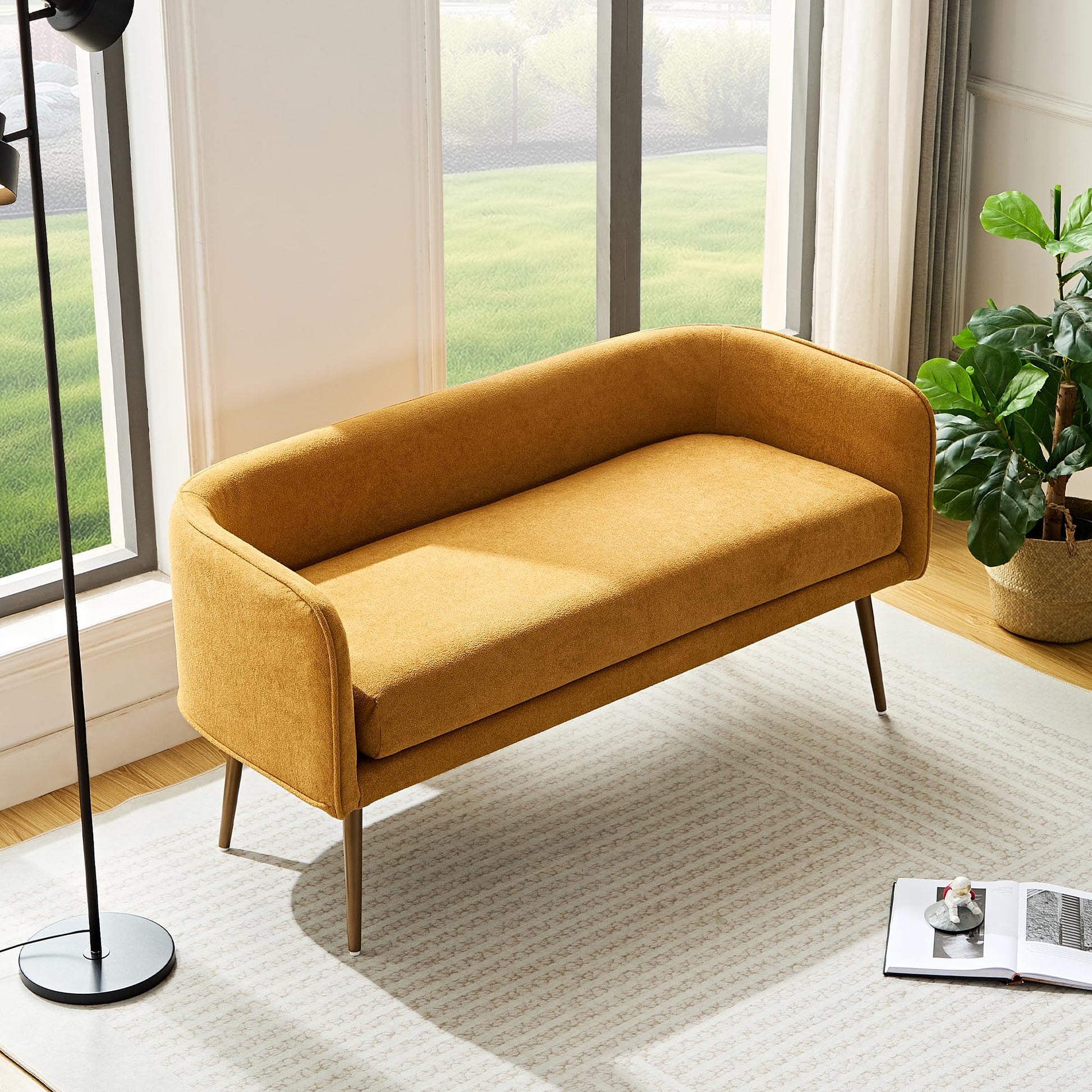This contemporary upholstered bench combines sleek design with practical functionality, making it a versatile addition to your bedroom, entryway, or living room. Featuring a low backrest and armrests for added comfort, this bench serves multiple purposes from extra seating to a stylish accent piece.