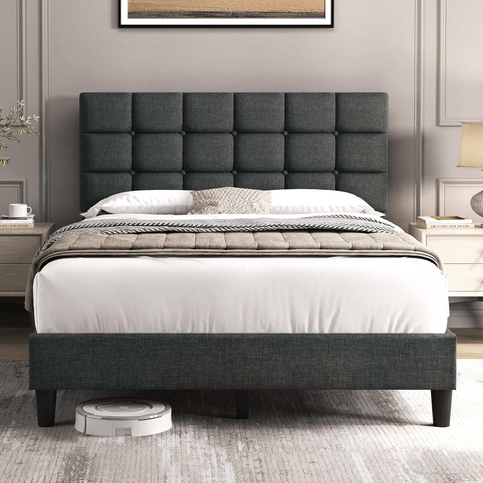 Transform your bedroom with this modern upholstered platform bed frame featuring an elegant square-stitched and button-tufted headboard. Designed for full-size mattresses, this bed combines style, comfort, and durability in one complete package.