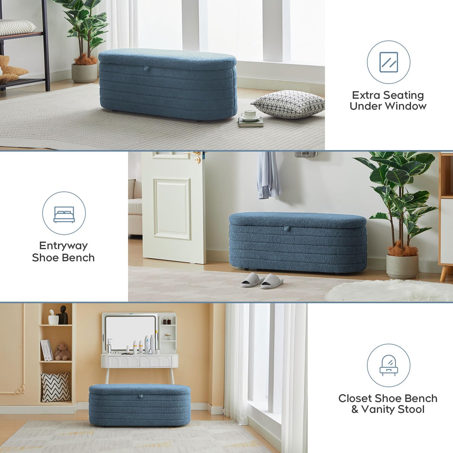 Perfect for living rooms, bedrooms, entryways, or any space requiring stylish storage and comfortable seating.