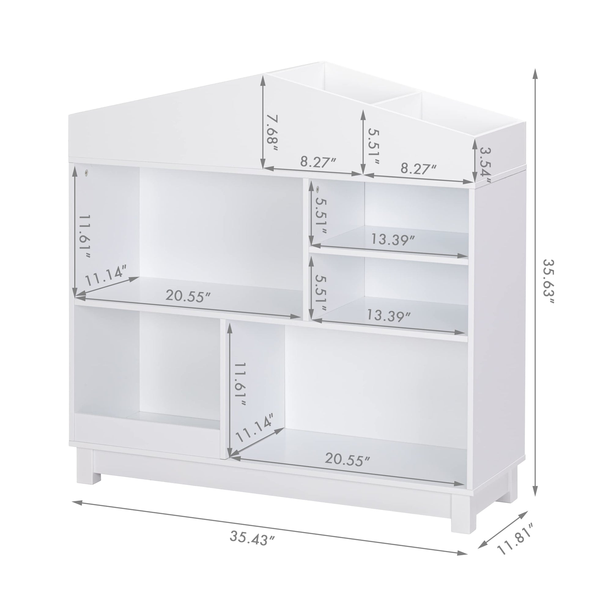 - MULTI-SCENE USE: The dimension of kids' bookshelves organizer is 35"W x 12" D x 35"H.It can display and store books, toys, blocks, draws,dolls,etc. It is ideal for use in bedrooms, children's rooms, playrooms, nursery school,living rooms.