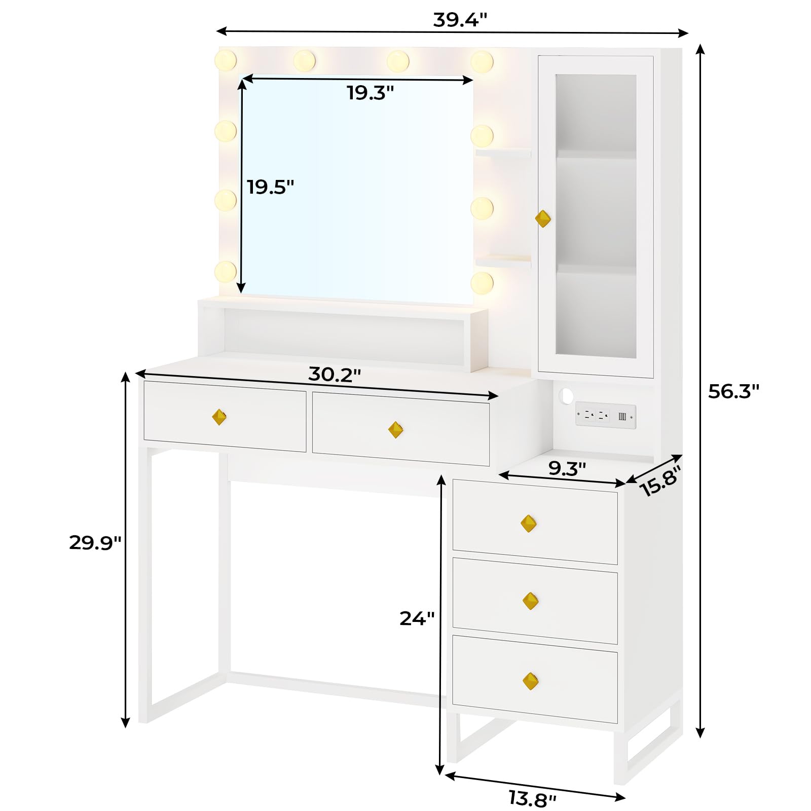 - Built-in Power Strip: Includes 2 standard plug sockets and 2 USB ports for convenient charging of hair tools and mobile devices