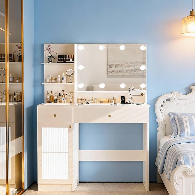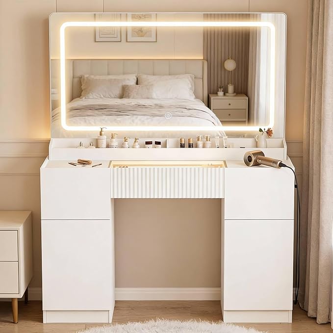 - 32-inch HD illuminated mirror with 3 adjustable brightness levels for perfect makeup application