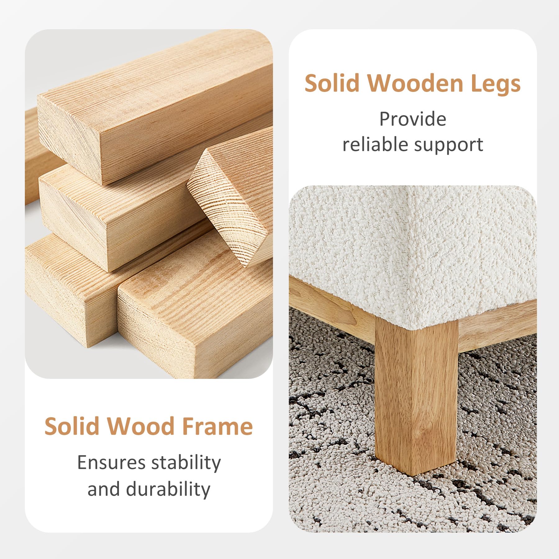 - Premium Boucle Fabric: The backrest and seat cushion are wrapped in ultra-soft, high-quality boucle, which offers superior comfort and outstanding shape retention. The textured fabric adds timeless elegance and is durable enough for year-round use.