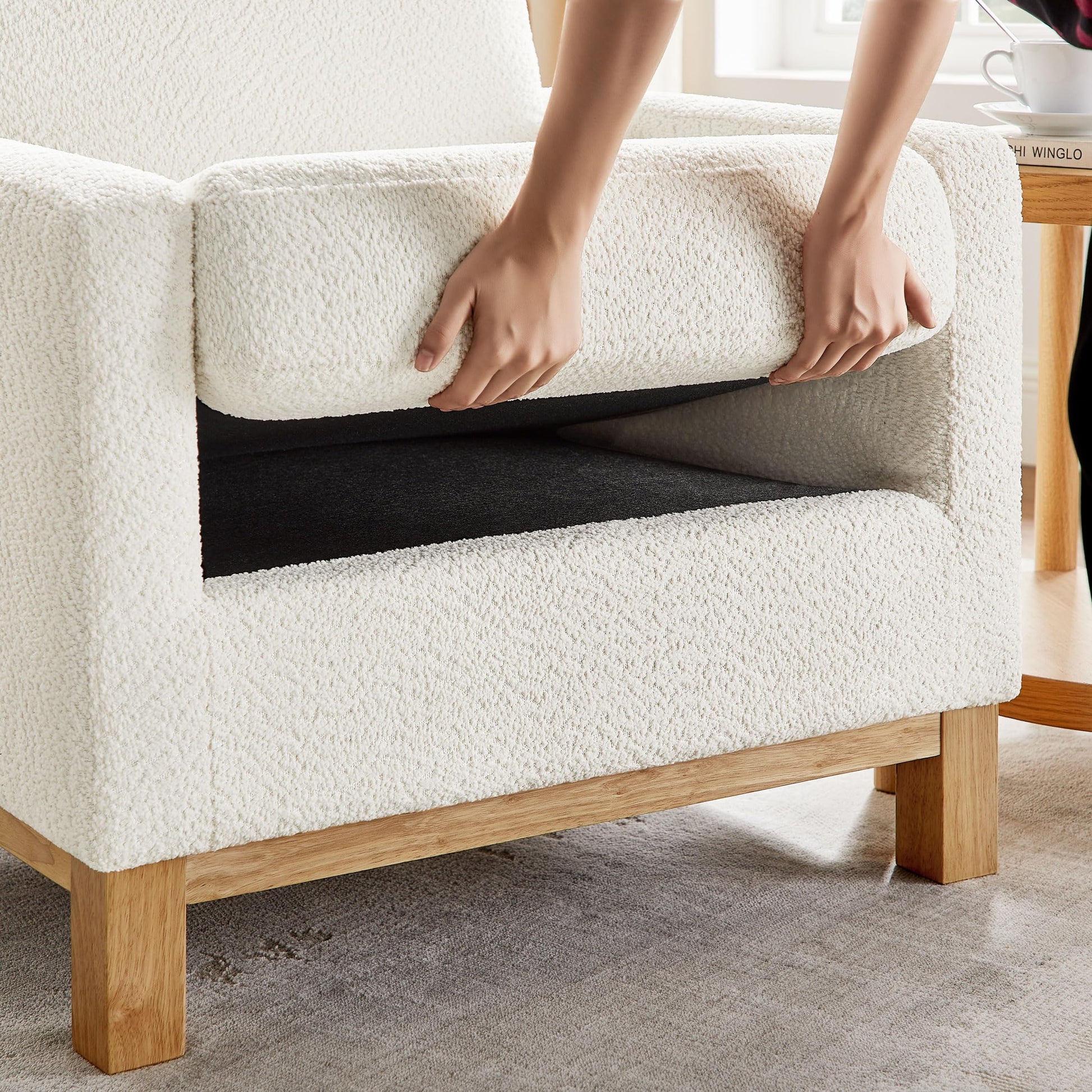 - Sturdy Solid Wood Frame: Built on a solid wood structure that supports up to 350 lbs, this living room chair is designed for lasting stability and everyday use. The wood grain enhances your space with a warm, earthy touch.