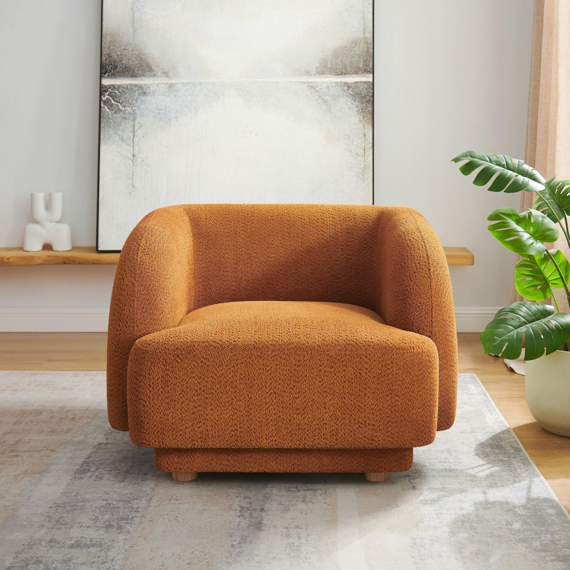 VANOMi Oversized Living Room Chair, Modern Comfy Accent Barrel Chairs, Single Sofa Chair with Wood Legs, Upholstered Armchair for Bedroom, Office, Waiting Room (Curry)