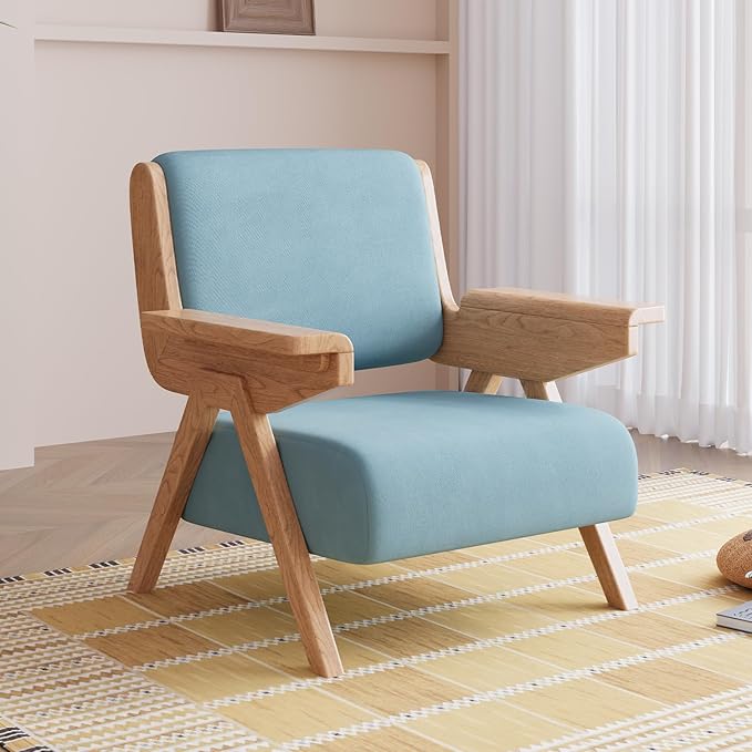 Mid-century modern accent chair featuring premium velvet upholstery and a sturdy solid wood frame. This elegant lounge chair combines comfort with timeless design, making it perfect for living rooms, bedrooms, or balcony seating areas.
