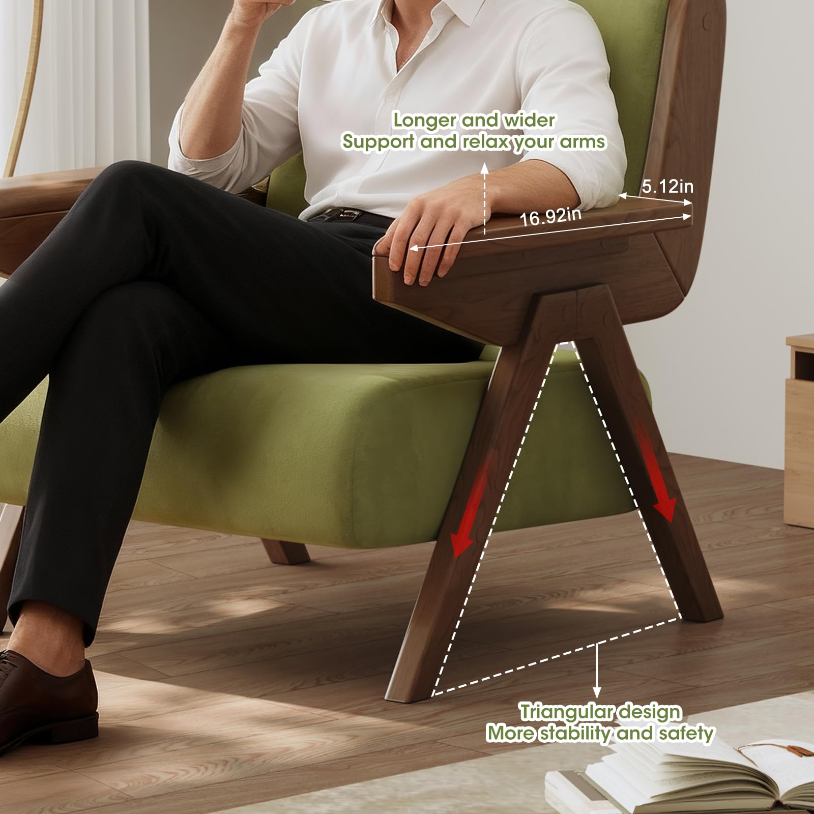 Velvet Accent Chair Solid Wood Frame Green