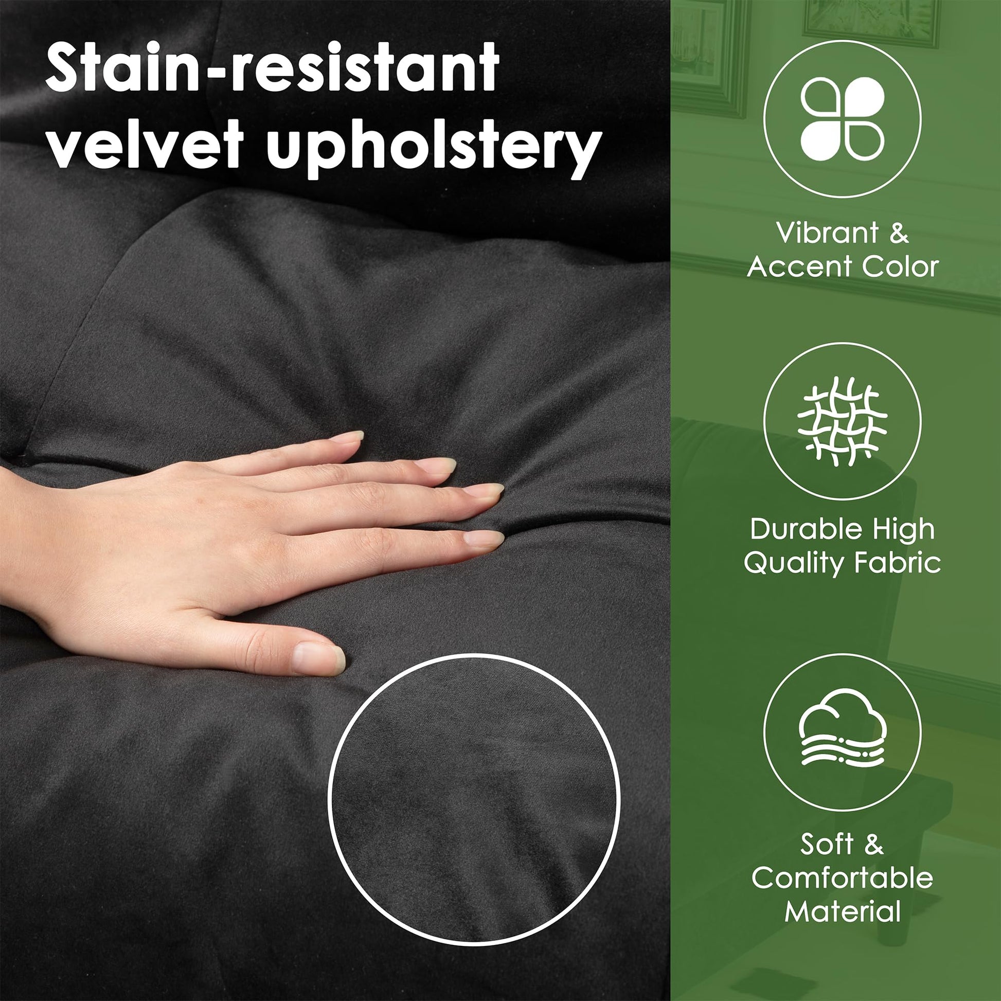 Transform your living space with this versatile convertible futon sofa bed. Crafted with premium velvet fabric and a sturdy hardwood frame, this modern loveseat combines comfort, style, and functionality for any room.