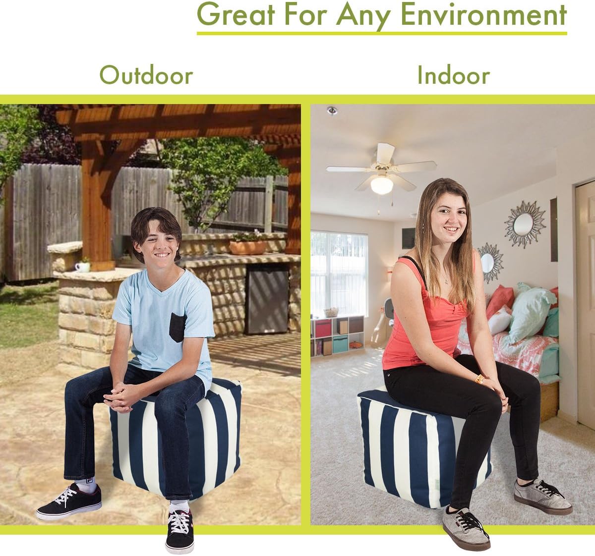 Vertical Stripe Indoor/Outdoor Pouf Ottoman 17x17x17