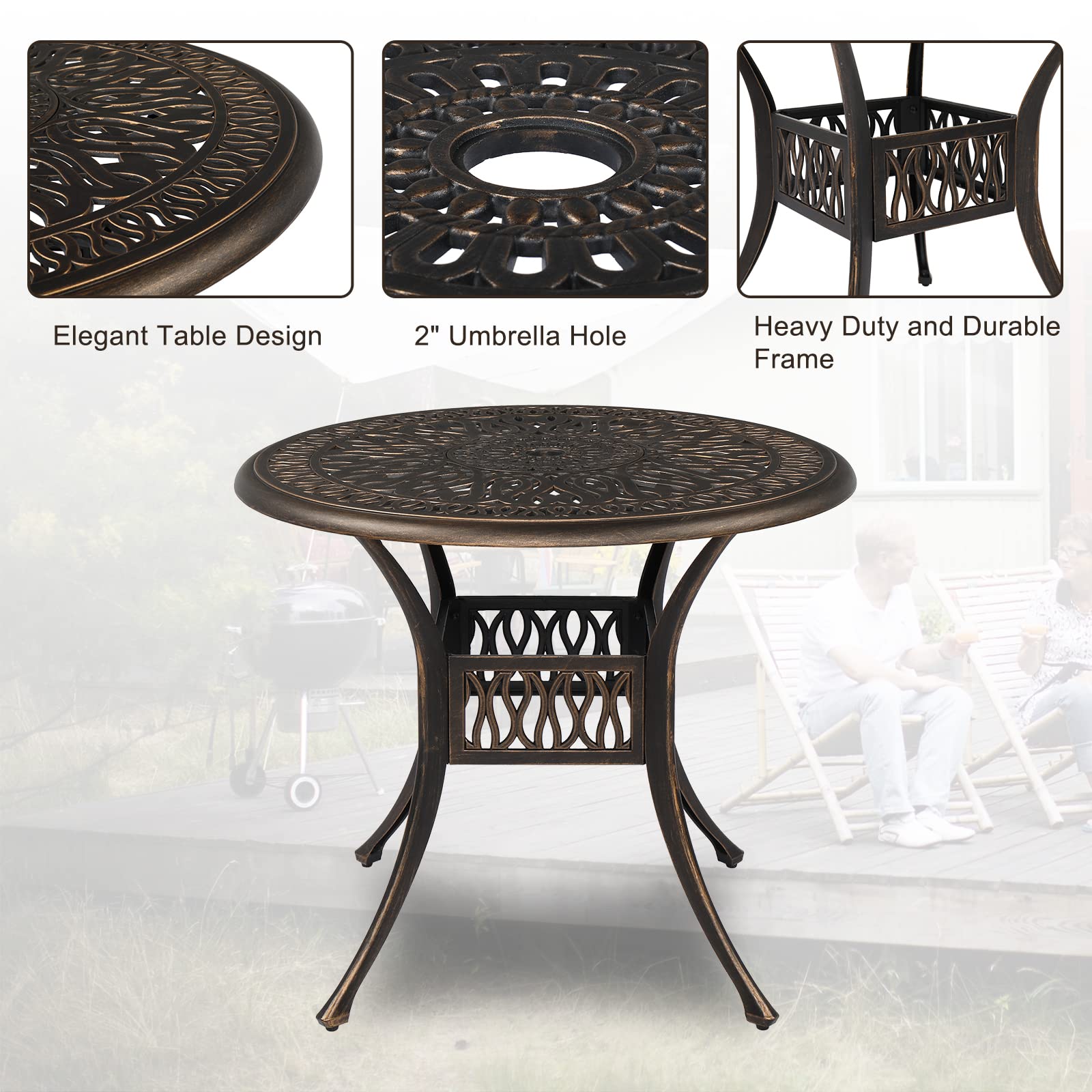 VINGLI 5-Piece Outdoor Patio Dining Set, Cast Aluminum All-Weather Outdoor Table and Chairs w/Cushion, Outdoor Furniture Set w/Umbrella Hole for Backyard Deck Poolside (Round, Elizabeth Back)