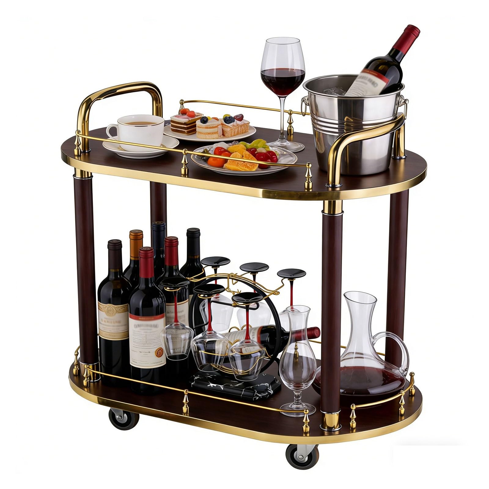 - Multi-tier storage for drinks, bottles, and barware