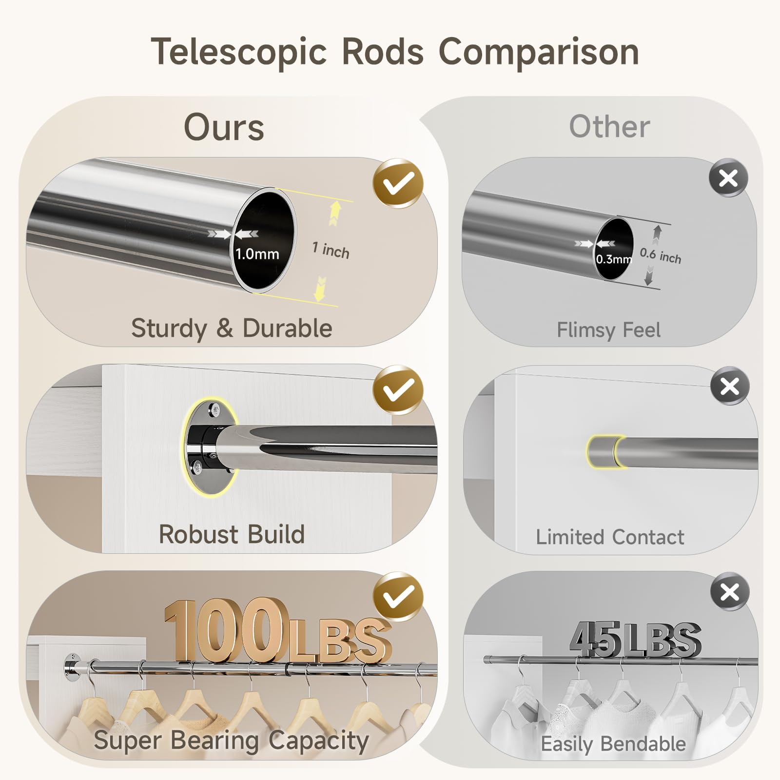 - 4 chrome-plated telescopic rods for hanging clothes
