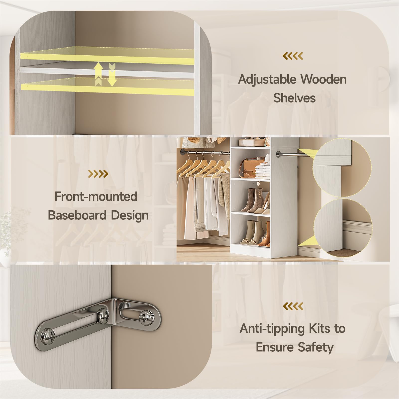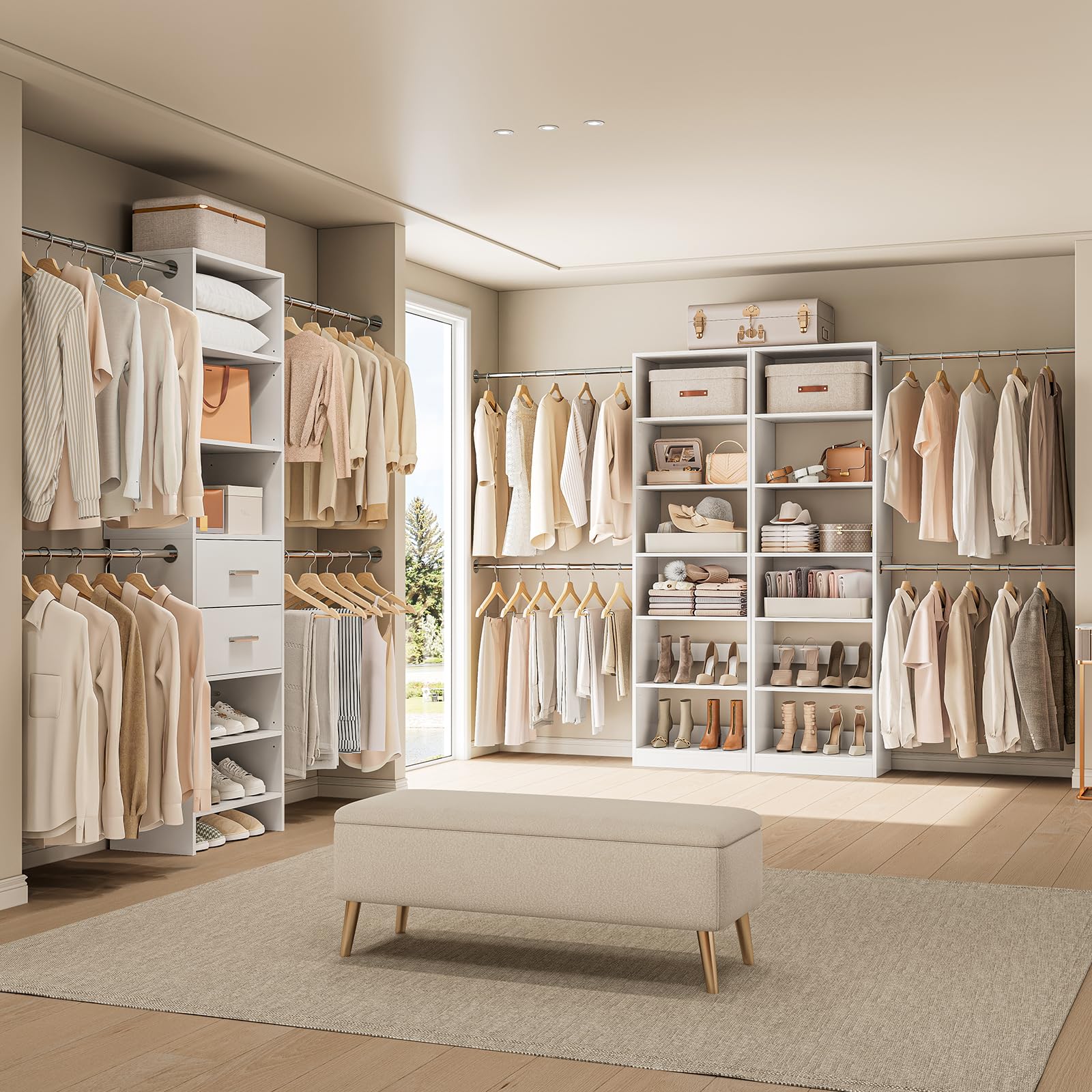 Perfect for walk-in closets, bedroom closets, dressing rooms, and storage areas where efficient organization is essential.
