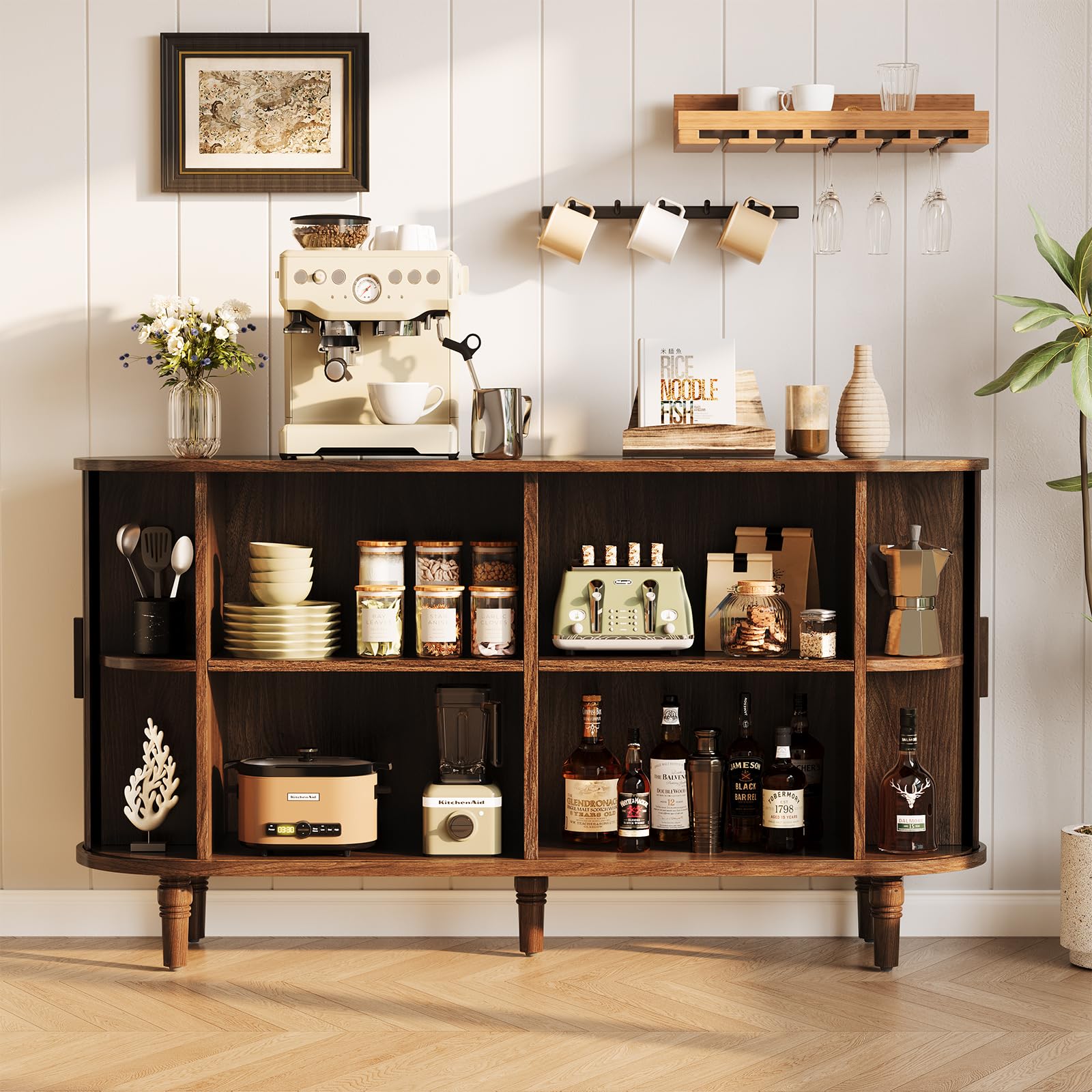 Elevate your living space with this versatile sideboard buffet cabinet featuring elegant sliding doors and a warm walnut finish. Designed for modern homes, this storage cabinet combines functionality with mid-century modern aesthetics.