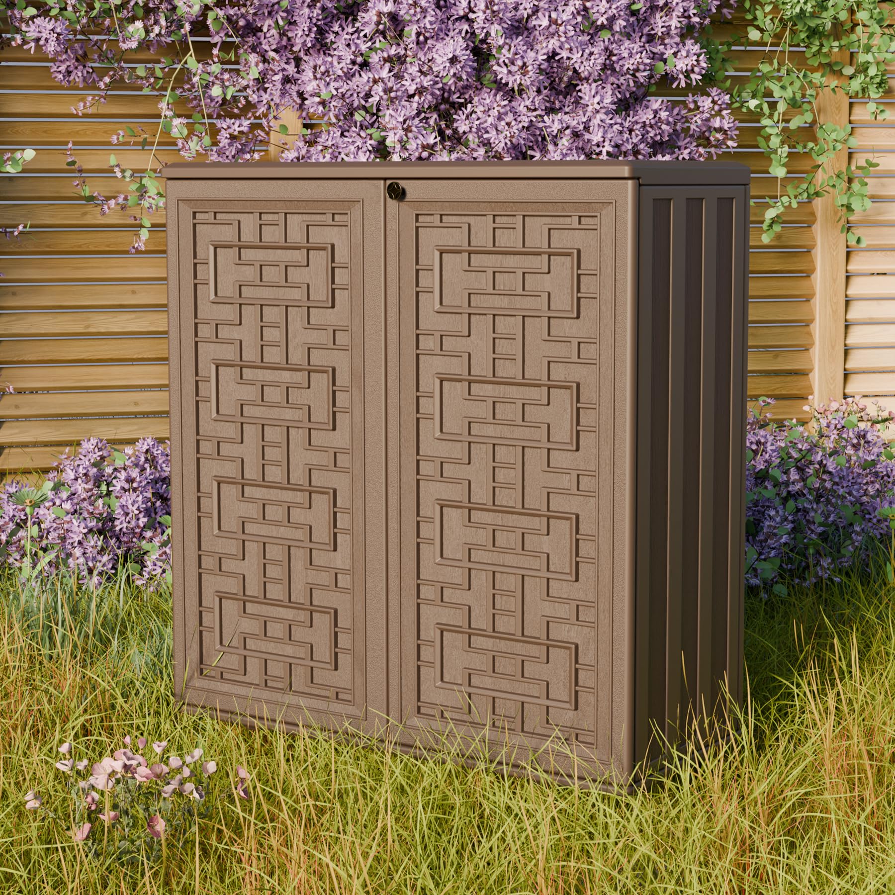 - Spacious interior accommodates gardening tools, cushions, and outdoor accessories