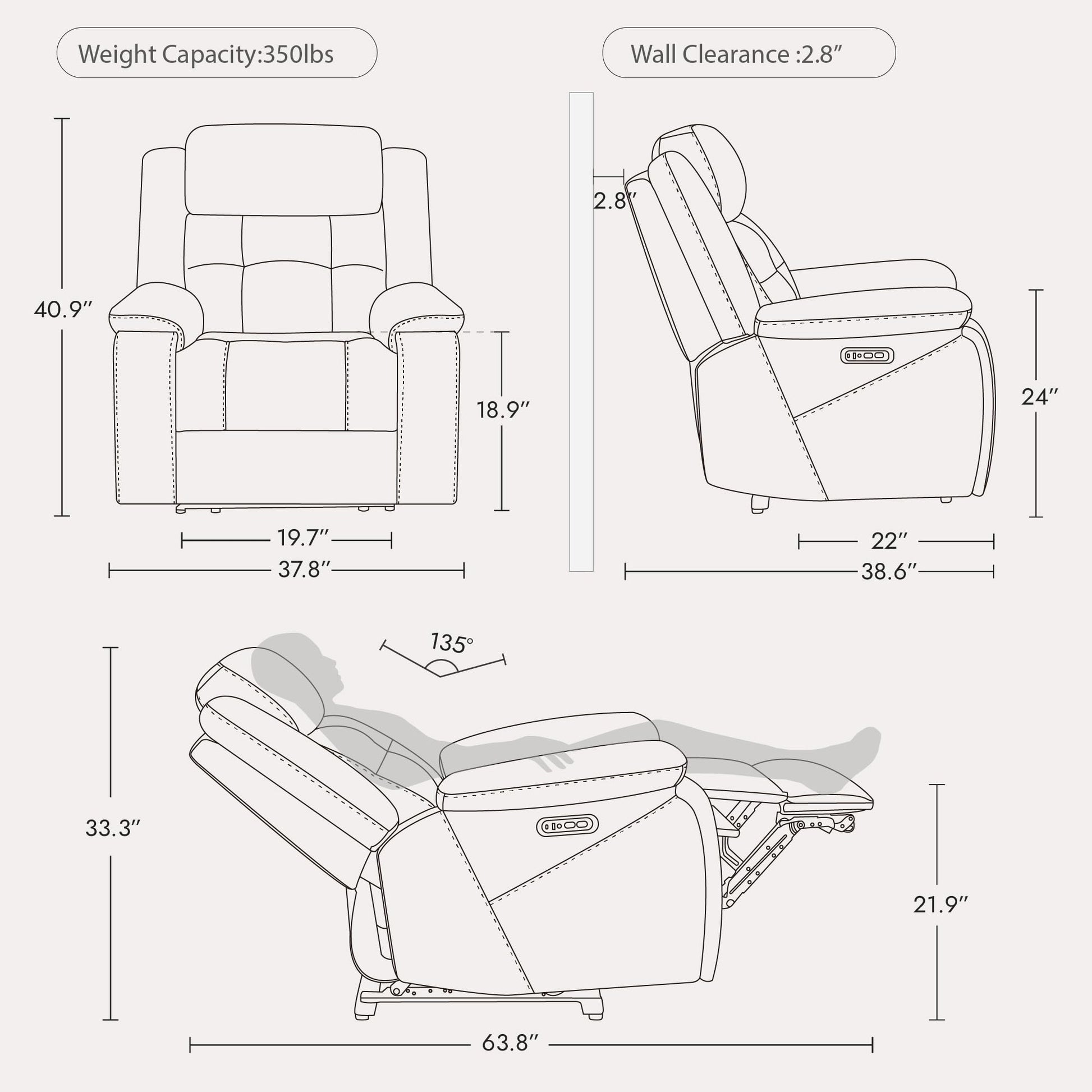 - Customize Your Comfort: Our power recliner chair feature a dual-motor system for personalized support in any position. The upright position keeps the backrest straight for reading, while the 135-degree recline is ideal for napping. The adjustable power headrest provides targeted head and neck support, so you can read or watch TV comfortably while reclined
