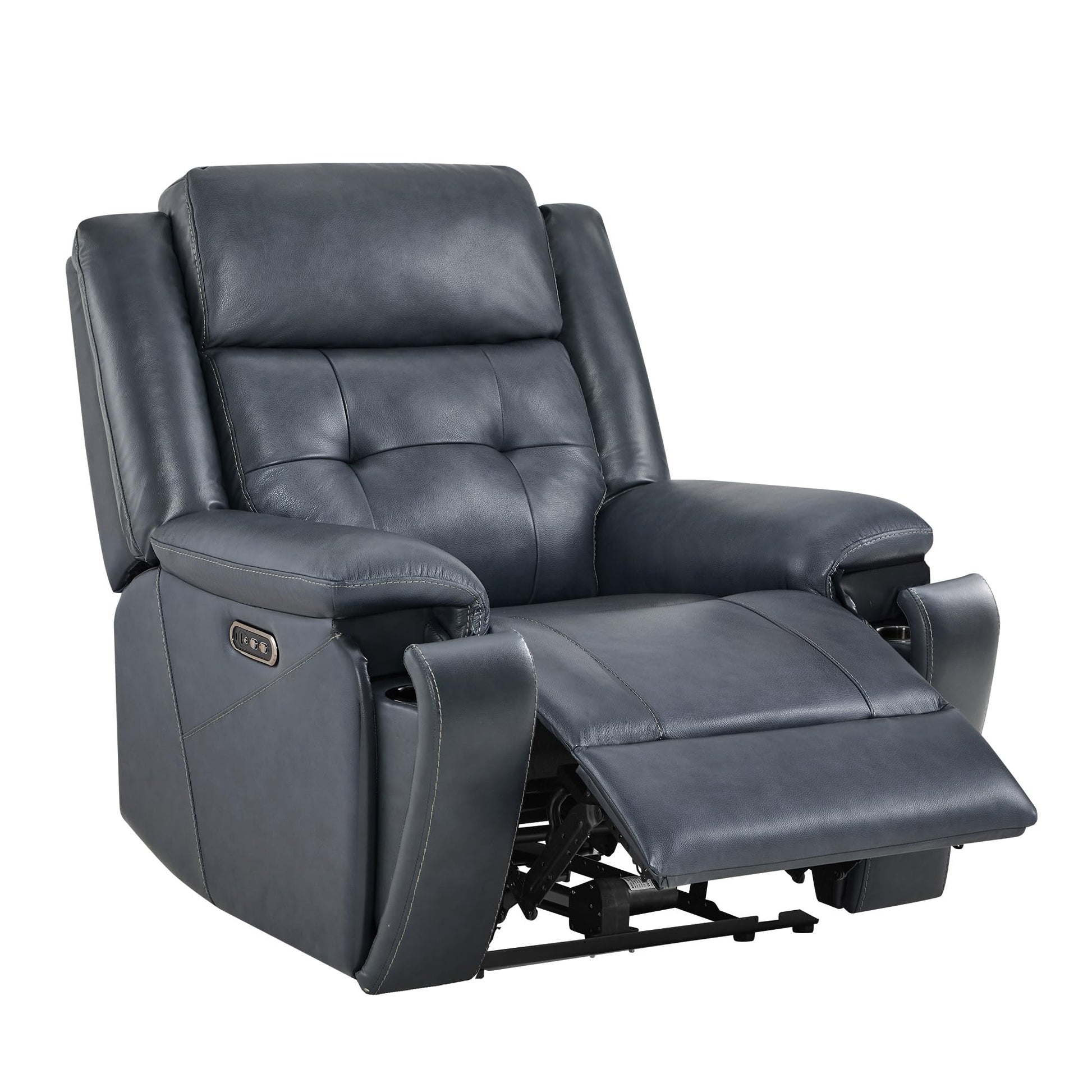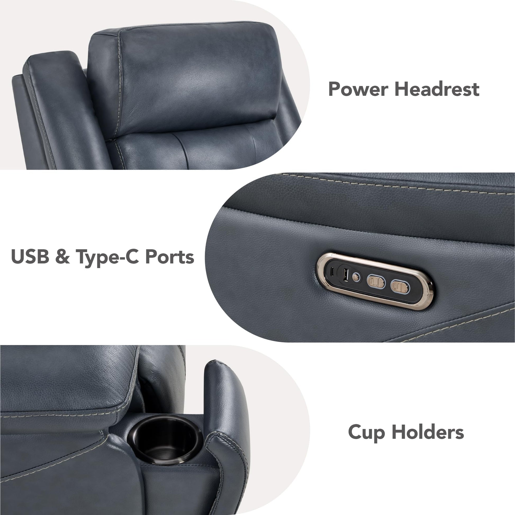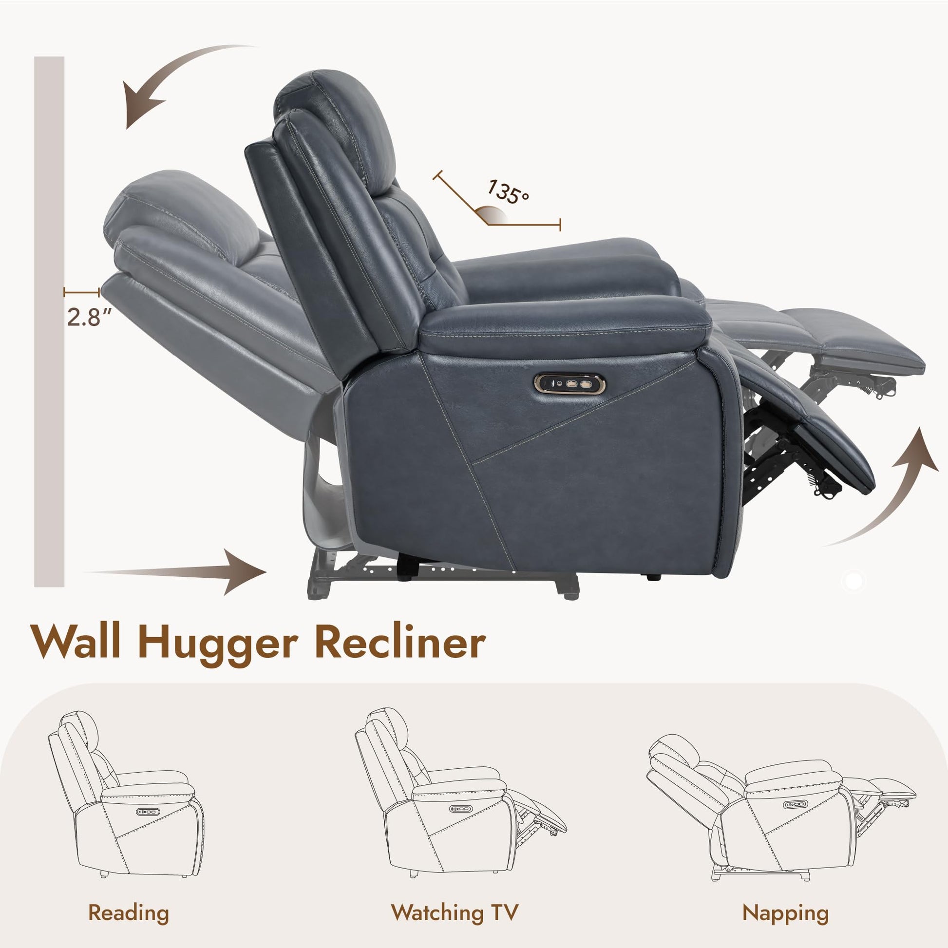 Watson & Whitely Genuine Leather Power Recliner Chair for Adults, Wall Hugger Recliner with Power Headrest, Cup Holders & Charging Ports, Electric Reclining Chairs for Living Room, RV, Navy Blue