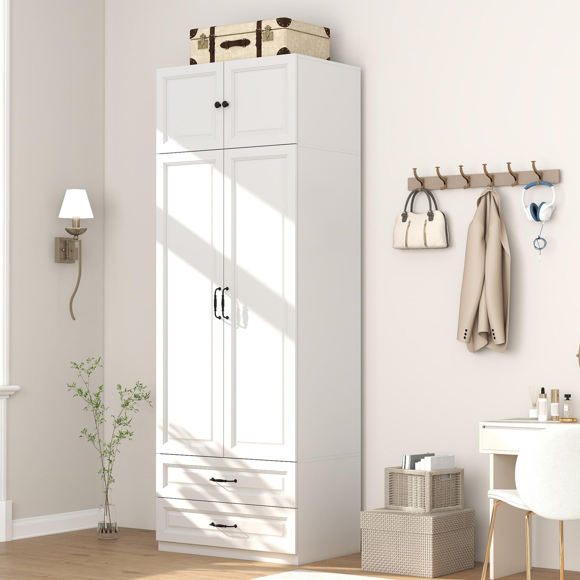 White Armoire Wardrobe Closet with Drawers and Hanging Rod