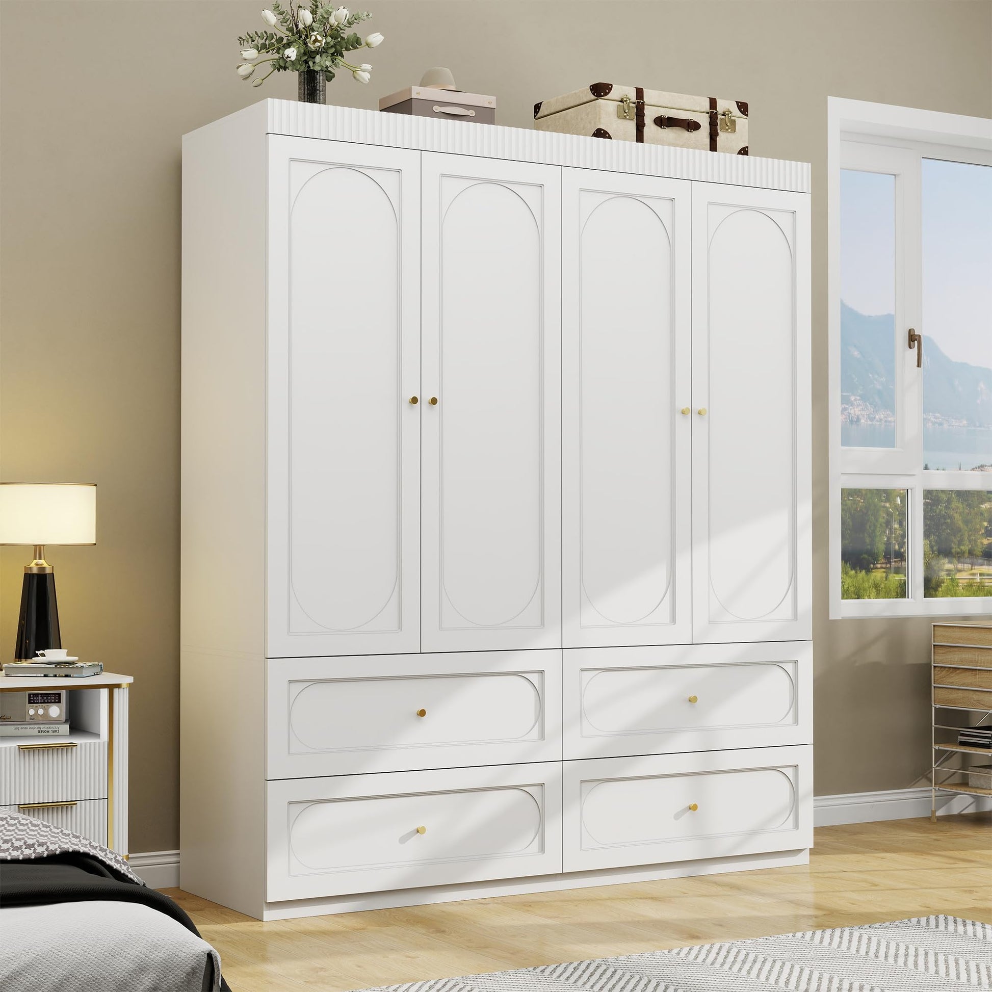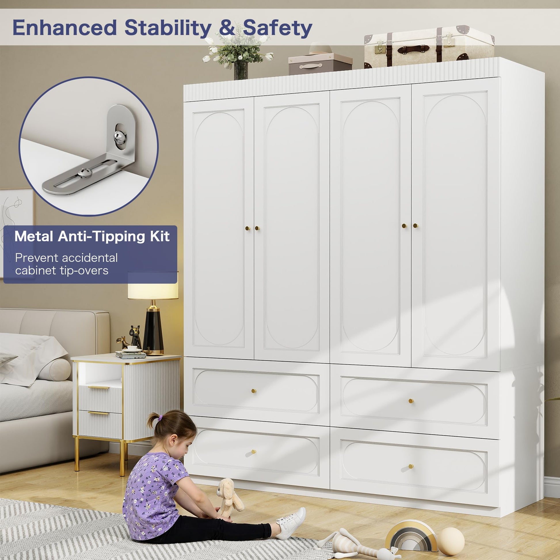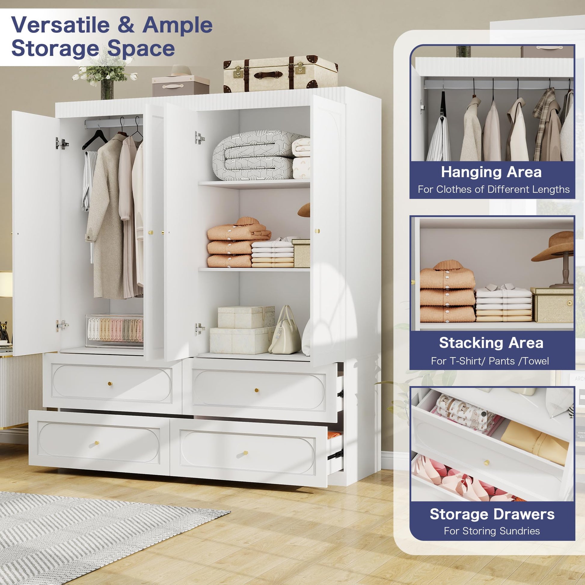 This multipurpose wardrobe cabinet serves bedrooms, living rooms, entryways, and offices with equal elegance. The 4-door and 4-drawer configuration allows you to neatly organize clothes, bedding, bags, and daily essentials. More than furniture—it's a complete storage system that helps create a clean, organized home.