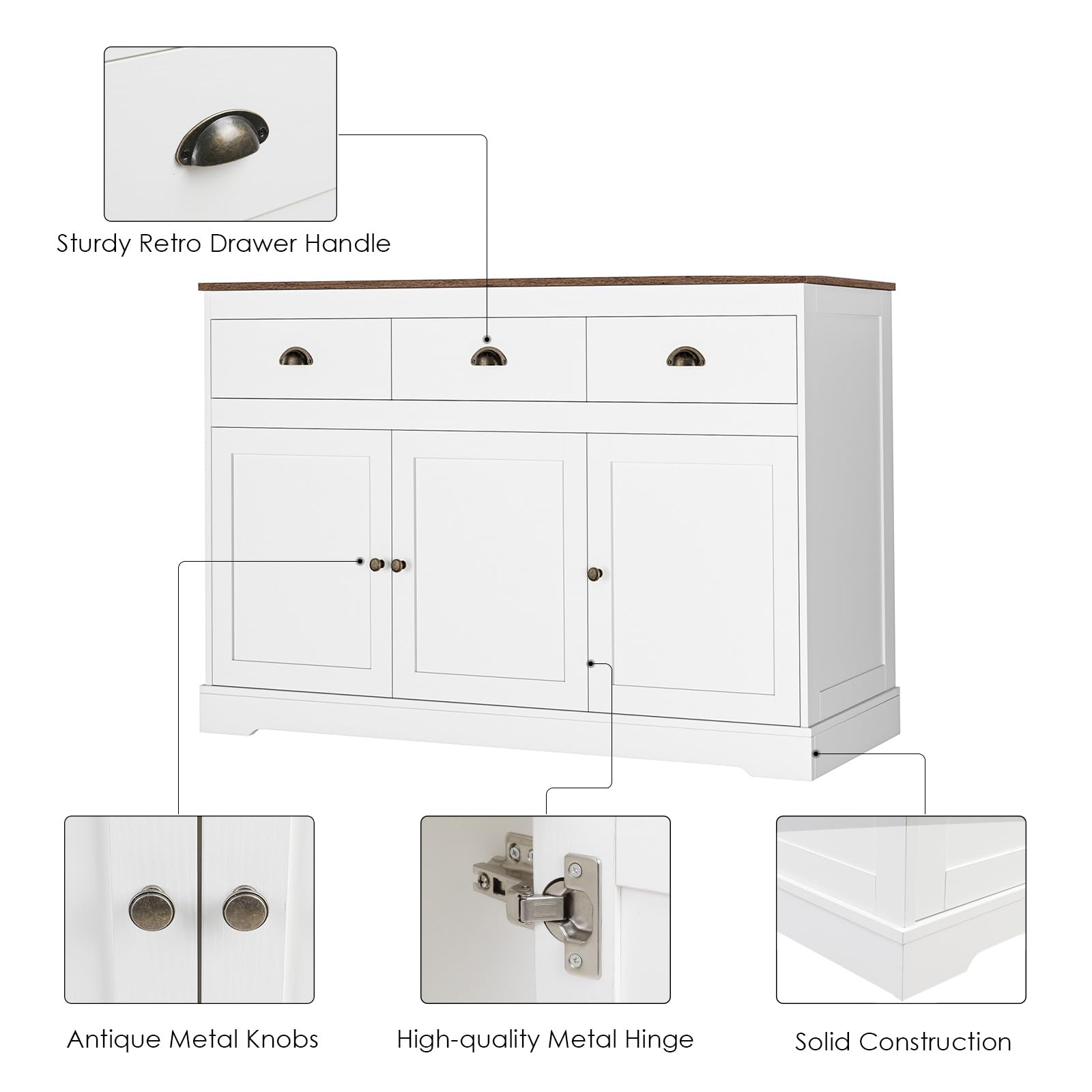 White Buffet Cabinet with 3 Drawers and 3 Doors