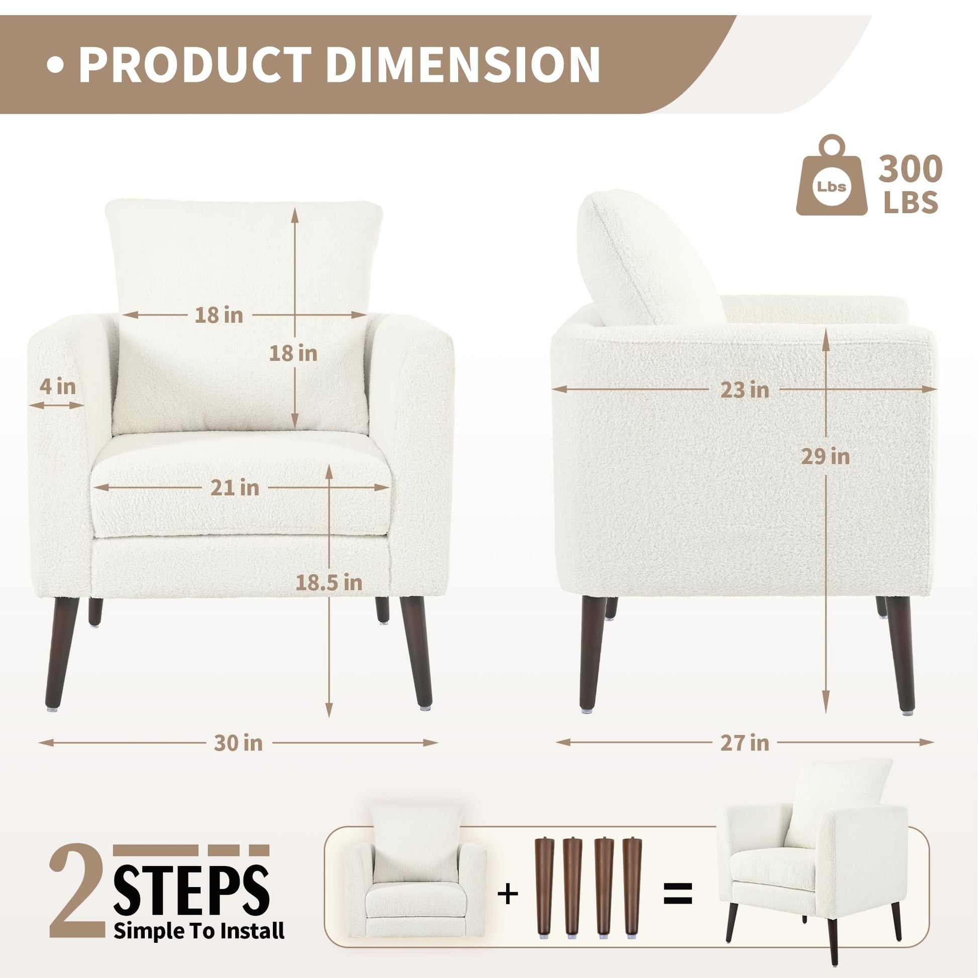 This modern upholstered armchair combines comfort and style with its wrap-around design and supportive cushioning. Perfect for living rooms, bedrooms, or reading nooks, this chair features a solid wood frame and elegant tapered legs that support up to 300 lbs.