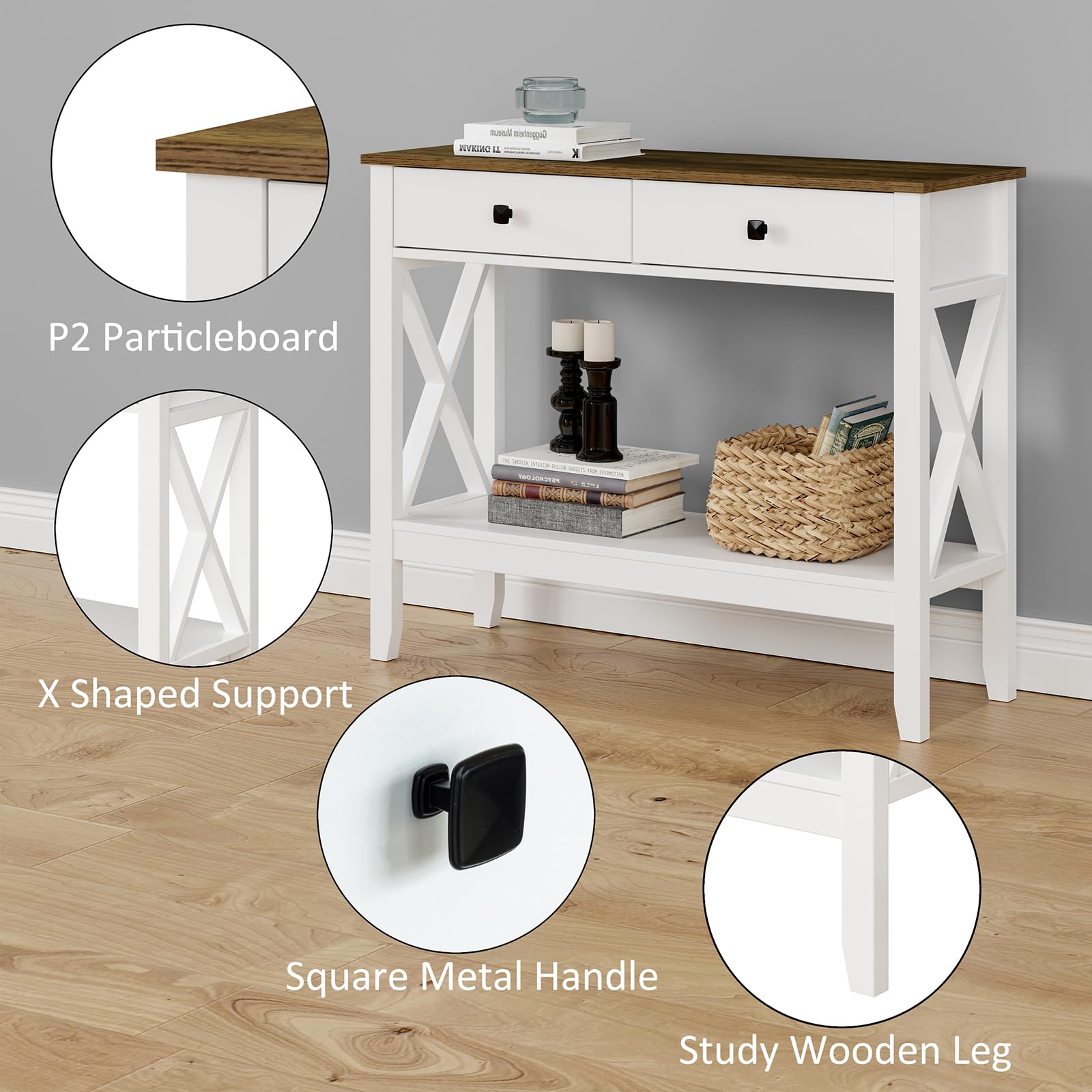 This sleek and modern console table combines farmhouse charm with practical storage solutions. The distressed wood finish and square metal handles create an elegant accent piece perfect for any room in your home.