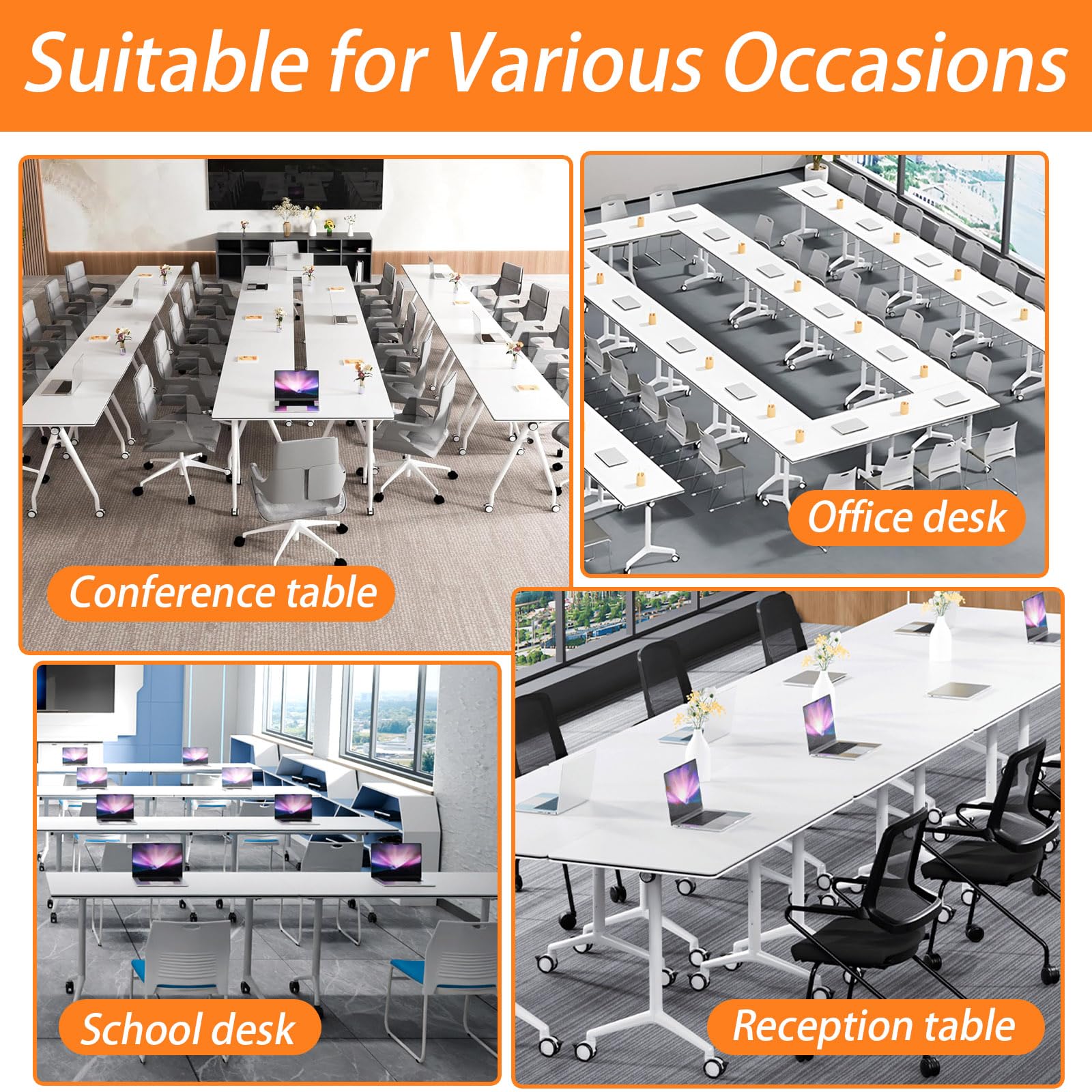 Space-saving folding conference table designed for professional settings. Features flip-top design with enlarged folding locks for quick setup and storage, perfect for training rooms, offices, and seminar spaces.