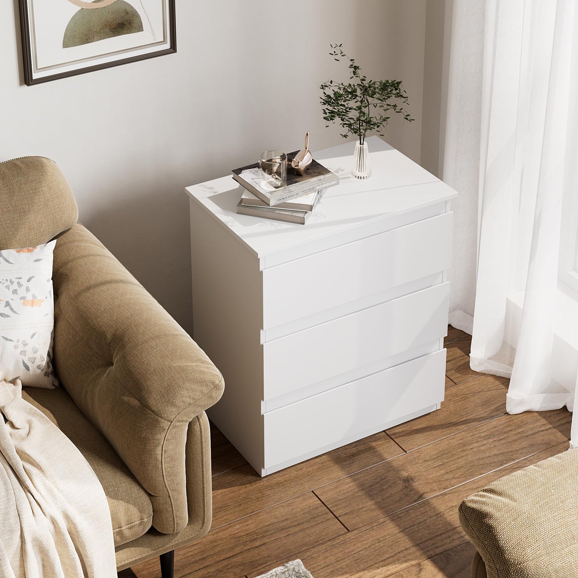 This elegant white nightstand combines functionality with modern design, perfect for any bedroom or home office. Featuring three spacious drawers, this compact bedside table provides ample storage while maintaining a sleek profile.