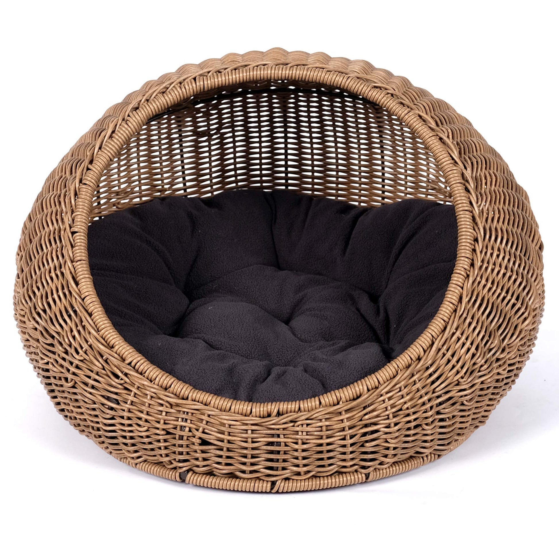 Give your feline friend a cozy retreat with this covered cat hideaway hut. Crafted from faux rattan, this dome-style cat bed provides a secure, comfortable space where your cat can rest, sleep, and feel protected.