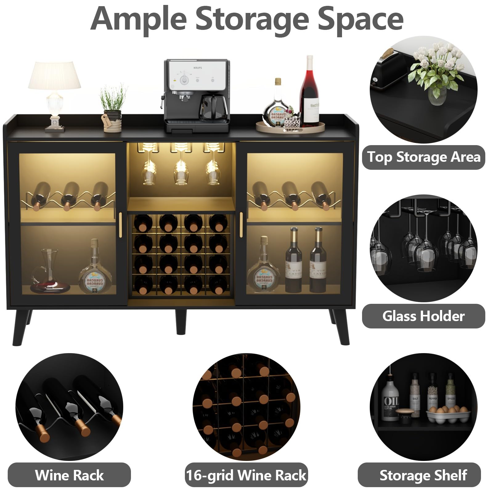 Transform your space with this versatile wine bar cabinet featuring integrated LED lighting and comprehensive storage solutions. Perfect for organizing your wine collection, glassware, and bar essentials while adding modern elegance to any room.