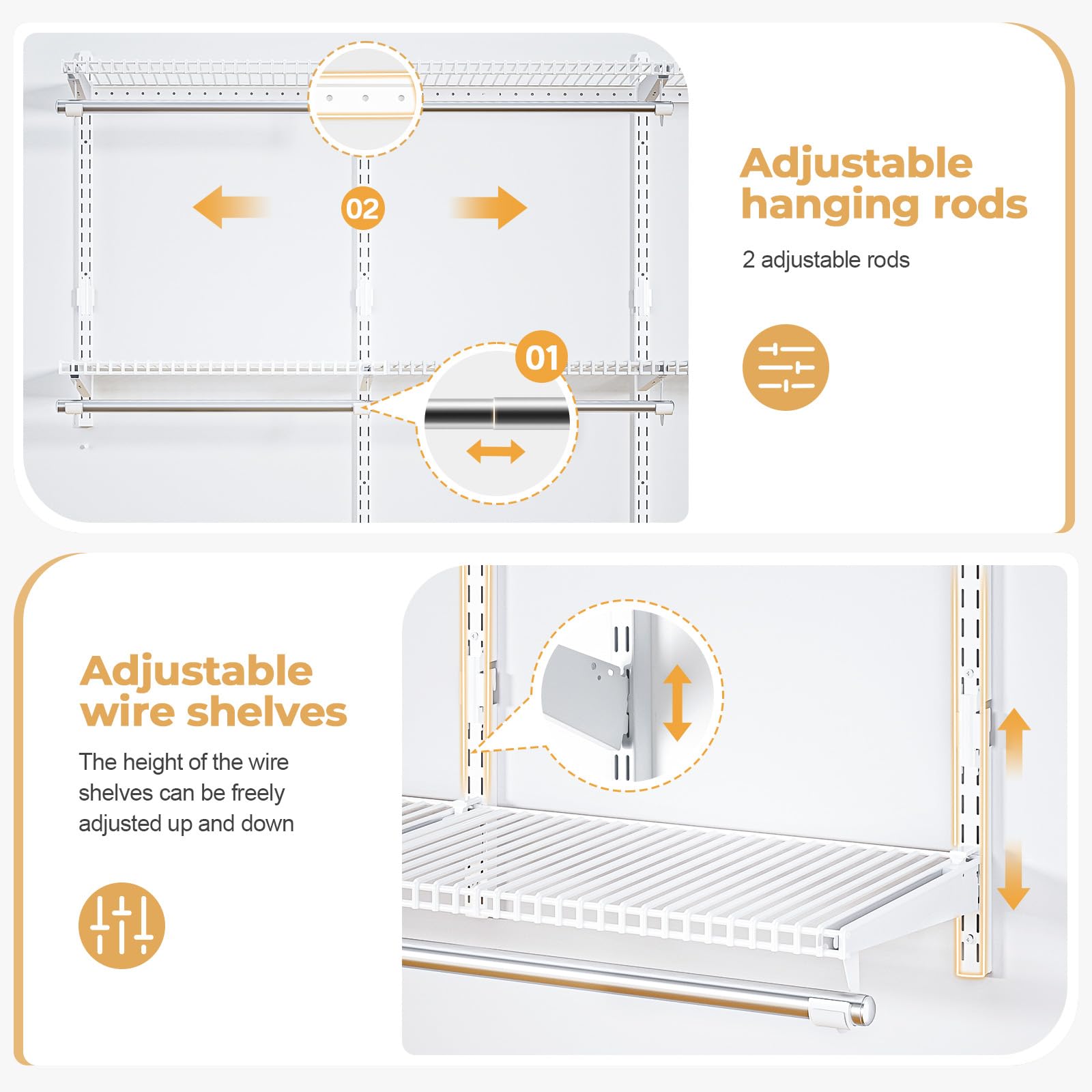 Perfect for bedrooms, master closets, kids' rooms, apartments, garages, and commercial spaces. The rust-resistant coating ensures durability in various environments while the modern white finish blends seamlessly with any home decor.