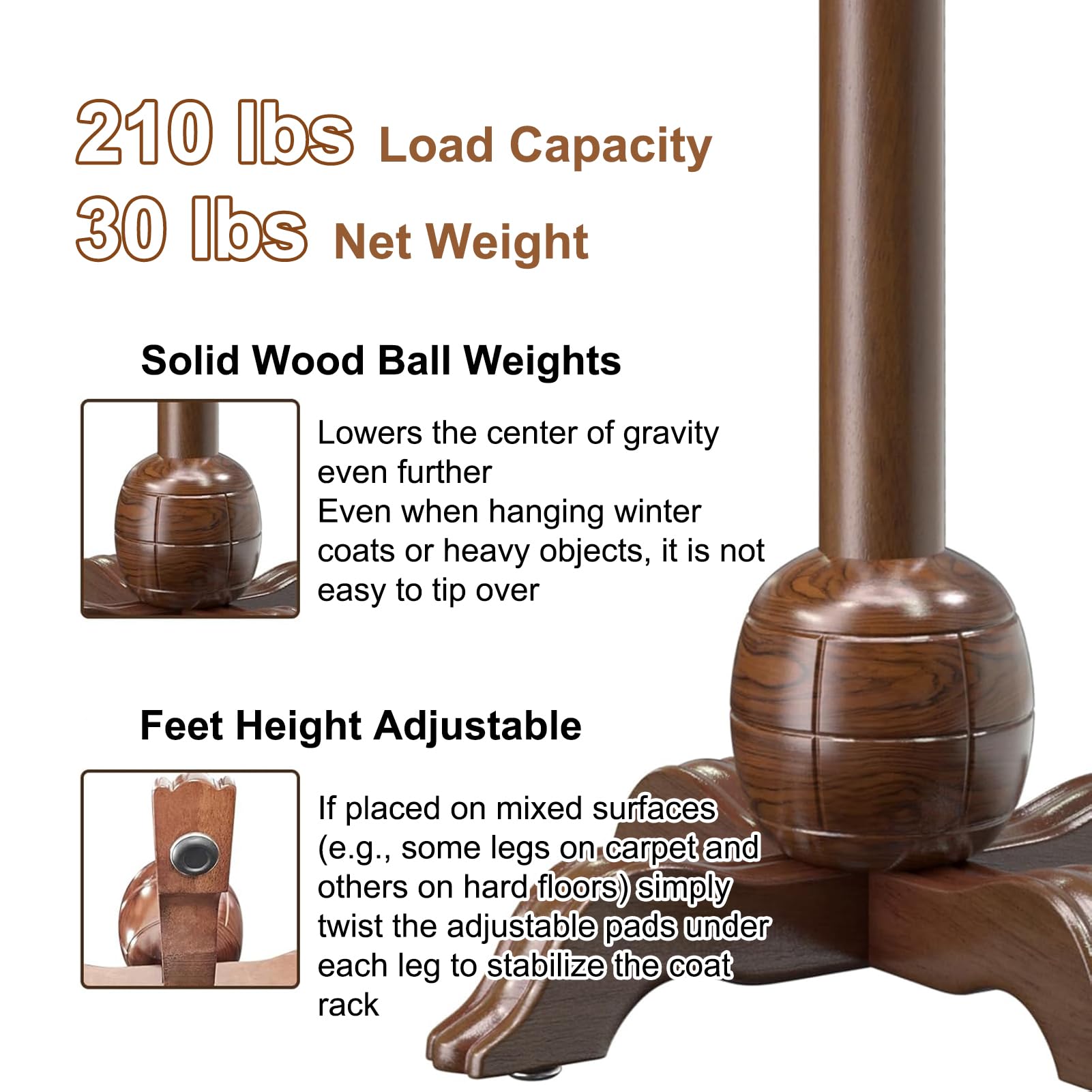 This freestanding wooden coat rack combines functionality with elegant design, perfect for organizing your entryway, hallway, or bedroom. Featuring 7 sturdy hooks and a stable sphere base, this heavy-duty coat tree provides reliable storage for coats, hats, scarves, and bags.