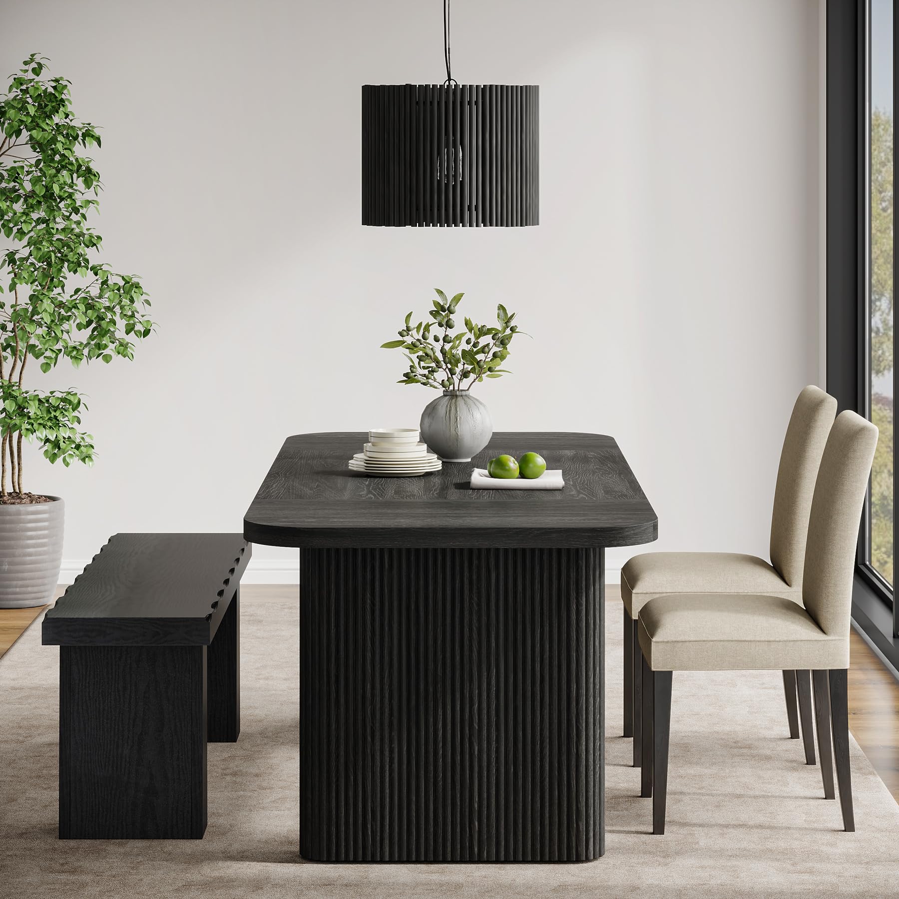 This elegant wooden dining bench combines sophisticated design with exceptional durability. The sturdy frame is crafted from high-end MDF material with a thickened top board that resists wear and tear while comfortably supporting significant weight.