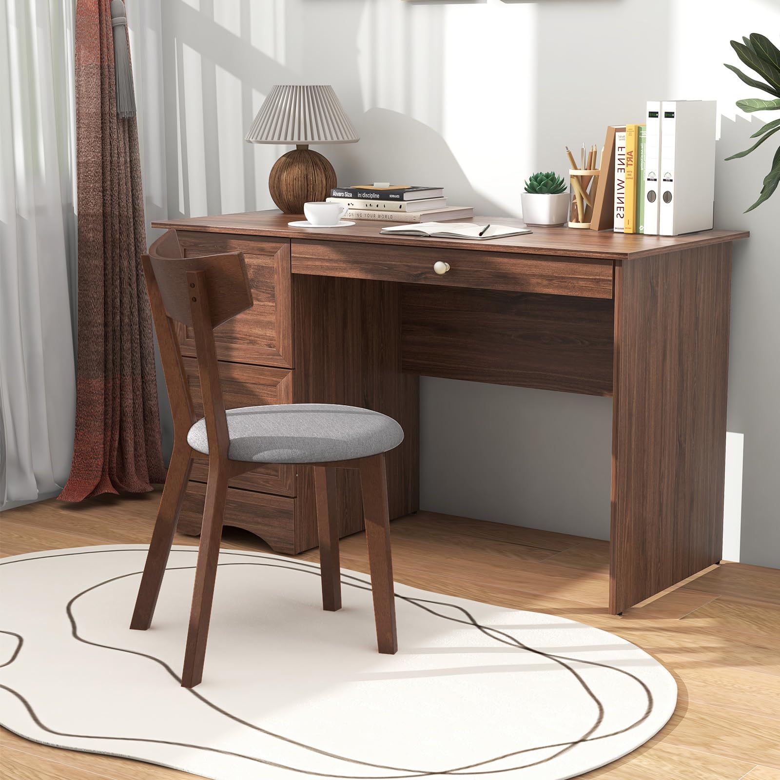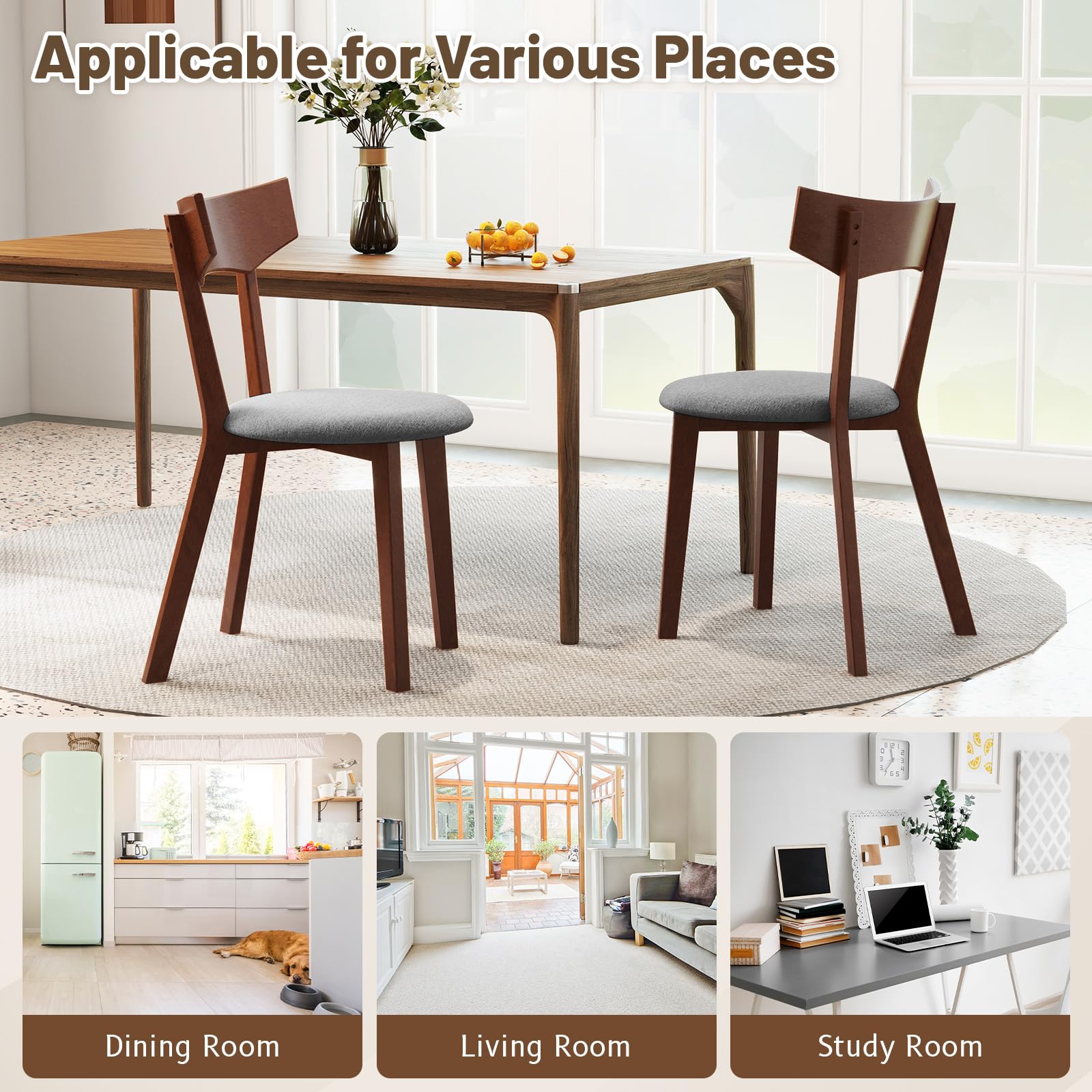 Wooden Dining Chairs Set of 2 with Curved Back and Cushioned Seat