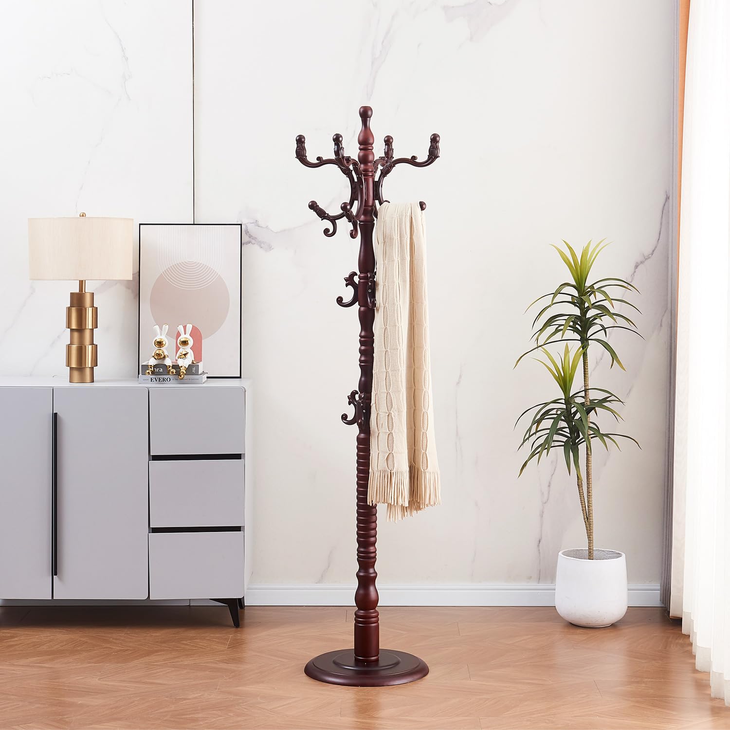 Transform your entryway with this elegant wooden coat rack featuring 14 sturdy hooks and a stable disc base. Crafted from high-grade wood, this freestanding coat tree provides ample storage for coats, hats, scarves, and bags while adding a touch of natural warmth to your space.