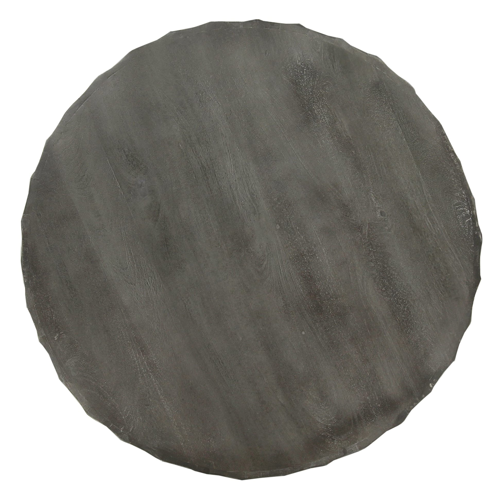 Expertly crafted, this wooden coffee table makes a splendid addition to the aesthetics of your interior. Featuring a geometric pattern on a drum-shaped table with sturdy construction from quality mango wood for lasting durability, the gray tone finish accentuates the replicated grain details. Supported on a round and stable base, the clean-lined design imparts a sophisticated touch to it.