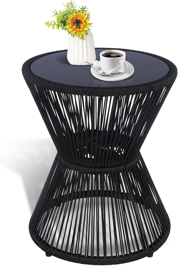 This woven rope side table combines durability with modern aesthetics, making it the ideal accessory for both indoor and outdoor living spaces.